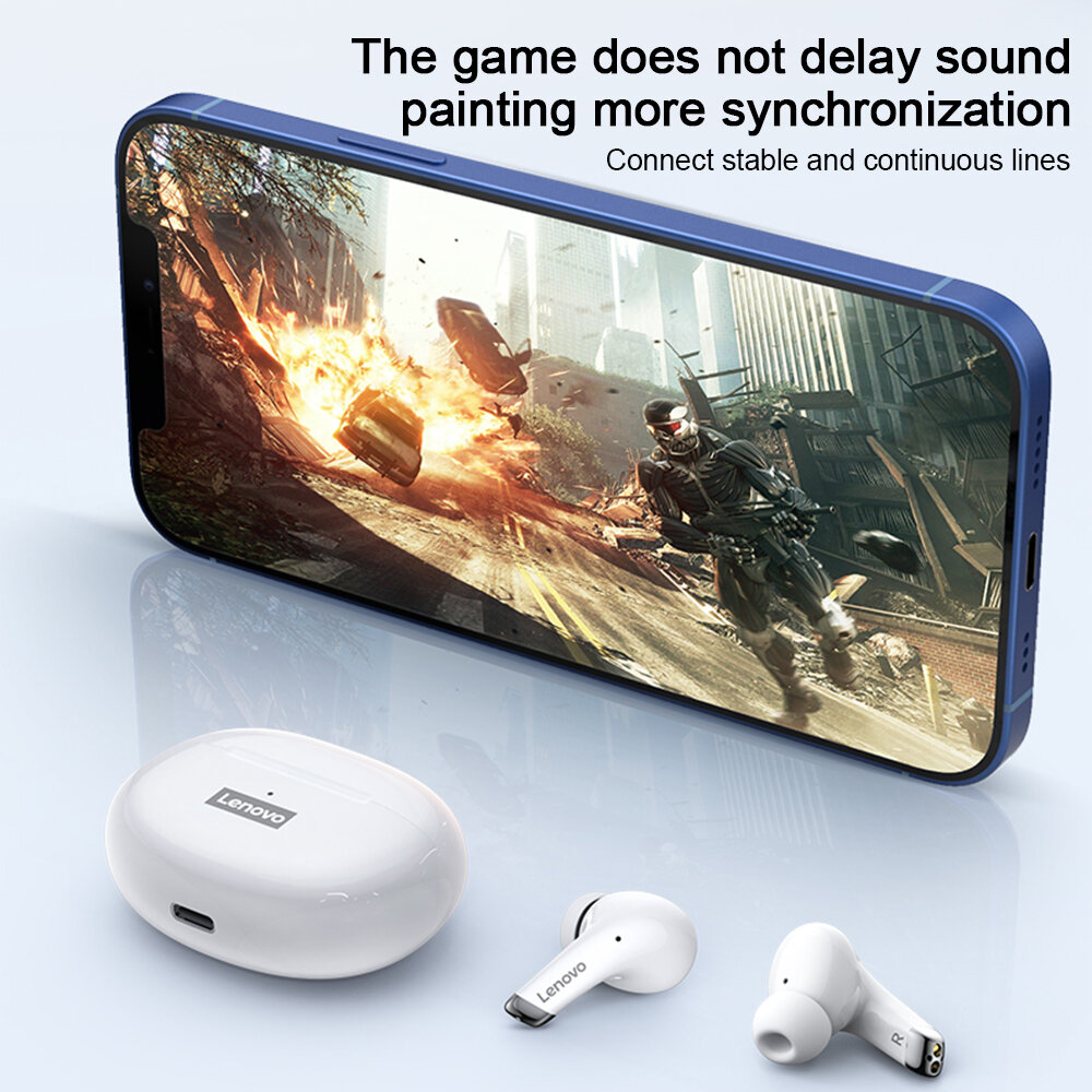 Lenovo LP5 TWS Bluetooth 5.0 Casque ENC Reduction du bruit ecouteurs de jeu e faible retard 13mm Pilote dynamique Wateroof Sports Casque intra-auriculaire avec micro – Blanc