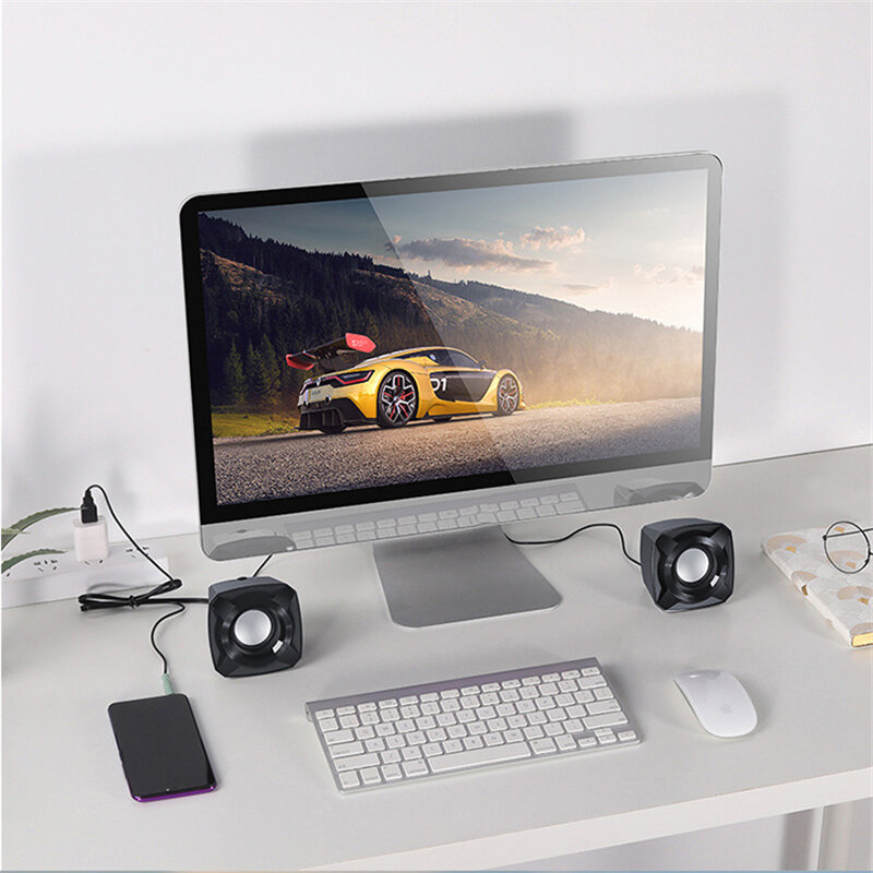 Lenovo M510 haut-parleur filaire HIFI stereo basse 2.0 barre de son USB 3.5mm multimedia double haut-parleurs de bureau pour ordinateurs portables – Noir