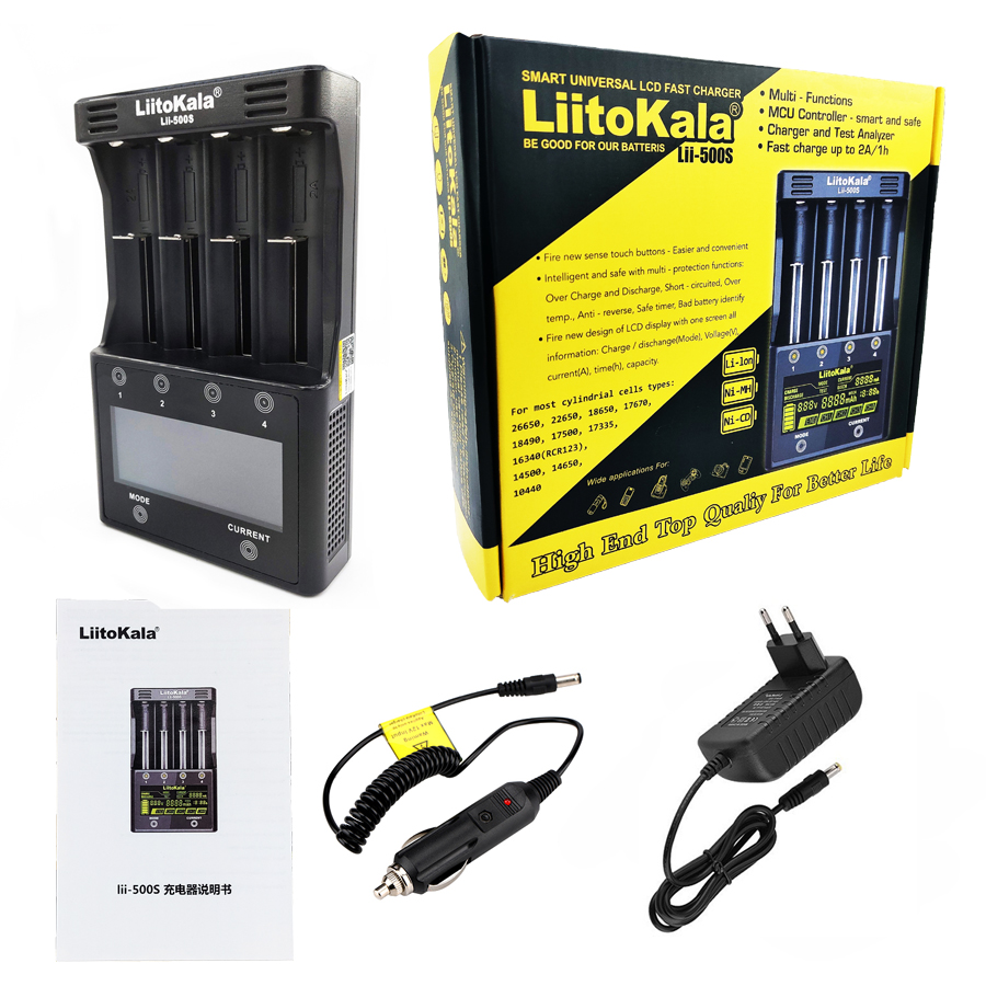 LiitoKala lii-500S LCD Screen Battery Charger 18650 for 26650 21700 AA AAA Batteries Touch Control UK plug