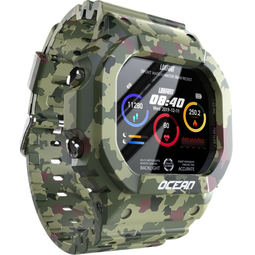 LOKMAT OCEAN IP68 bracelet etanche moniteur de frequence cardiaque mode multi-sport camera telecommande montre intelligente – Bleu