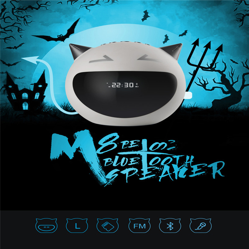 M8 Demon Wireless Bluetooth Speaker 5.0 Singing Microphone Radio Portable Mini Subwoofer Clock Alarm Sound Black
