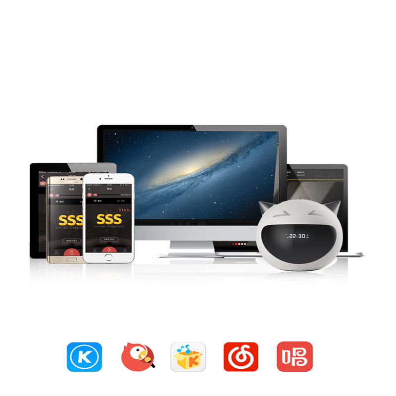 M8 Demon Wireless Bluetooth Speaker 5.0 Singing Microphone Radio Portable Mini Subwoofer Clock Alarm Sound White