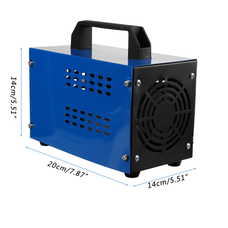 . Specification: Nom: Generateur d'ozone 220V Tension nominale : 220 V Type : 20/24/28/36/48g/h Couleur bleue Dimensions : 14 cm x 20 cm x 14 cm Emballage inclus: 1 x generateur d'ozone