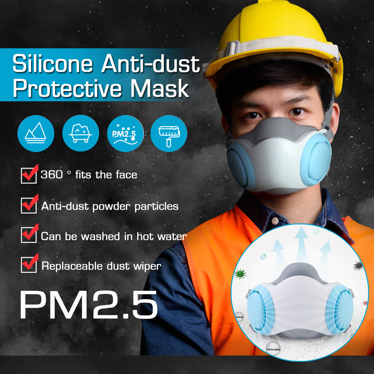 Masque en silicone PM2.5 Masque anti-poussiere Masque respiratoire reutilisable lavable