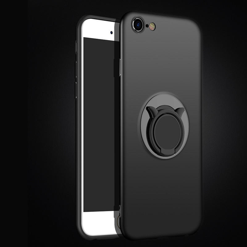 Matte Silicone Magnet Bracket Car Ring Buckle Mobile Phone Shell Soft Shell Shatter-resistant Protector for iphone 7P 8P – Black