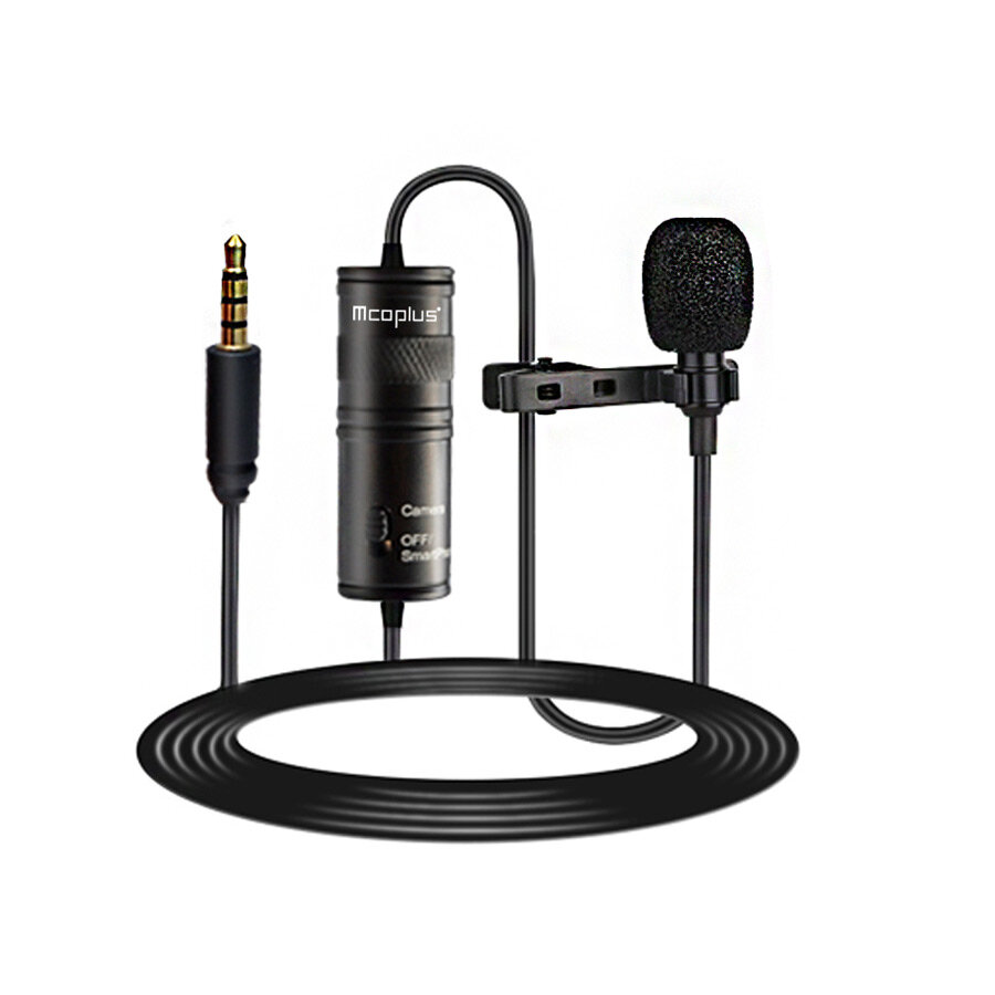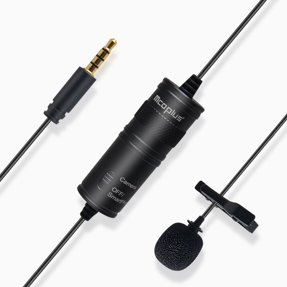 Mcoplus MCO-LVD600 Lapel Lavalier Microphone Interview Reception Vlog Live MIC enregistrement Compatible avec telephone camera ordinateur – Noir