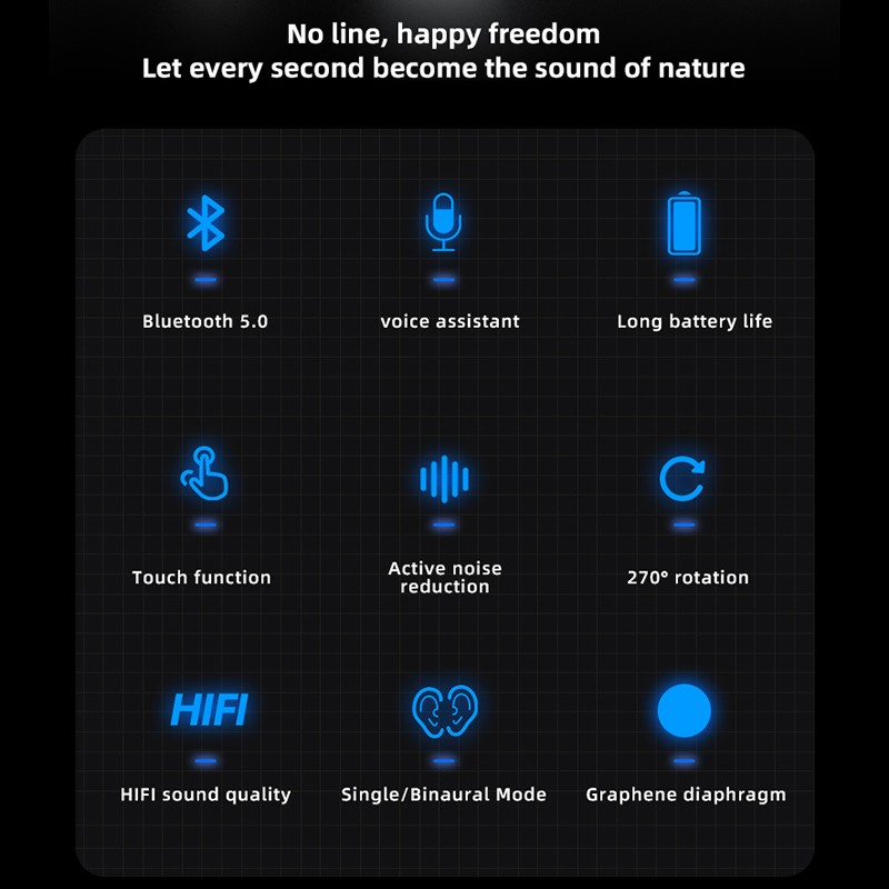 Good sound quality: Bluetooth 5.0 pure sound listening to sound, enjoy the quiet world, excellent sound quality and fine sound detail is full, non-greasyBluetooth 5.0 technology: high stability, no latency, no interference, high performance and low power consumptionTouch button operation function: Equipped with high-sensitivity keys for quick recognition by touch. Easy to understand operation, say goodbye to cumbersome