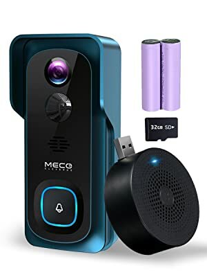 MECO ELE Sonnette video sans fil 1080P Camera de sonnette sans fil avec carillon gratuit WiFi Sonnette intelligente Vision nocturne IP65 etanche 166 e Sonnette audio 2 voies grand angle