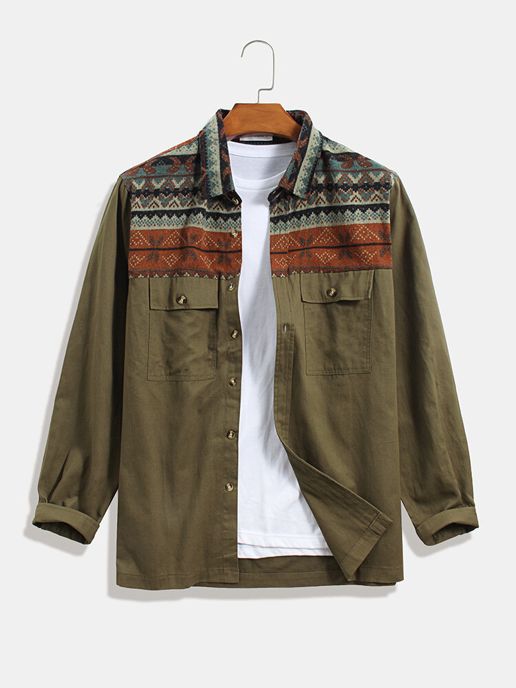 Brand:TWO-SIDEDDecoration:Pocket,ButtonElasticity:InelasticFit Type:Regular FitMaterial:CottonNeckline:LapelPattern Type:PatchworkScene:Leisure,Home,CasualSeason:Spring,Autumn,WinterSleeve:Long SleeveStyle:Vintage,CasualThickness:Regular