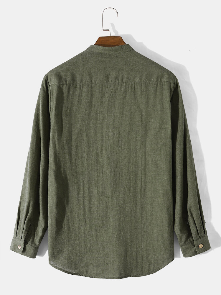Men 100% Cotton Mori Basic Henley Collar Buttons Long Sleeve Shirts – Green S