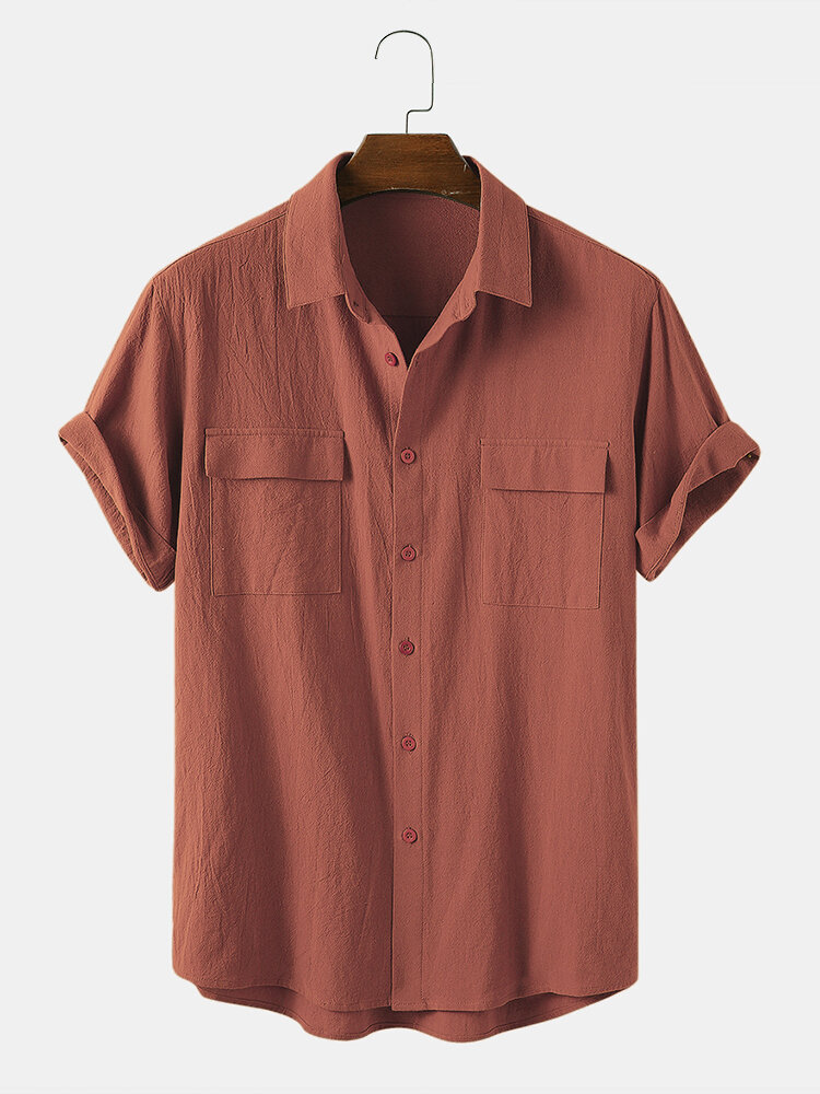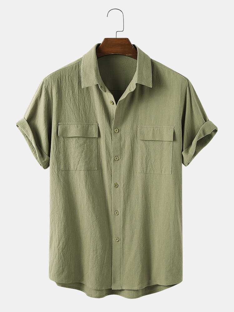 Description:Decoration:PocketFit Type:Regular FitMaterial:100% CottonNeckline:LapelScene:Leisure,CasualSeason:SummerSize:XXL,L,S,XL,MSleeve:Short SleeveStyle:Casual