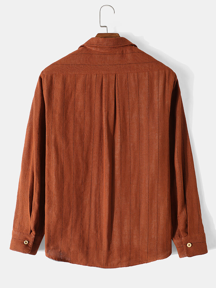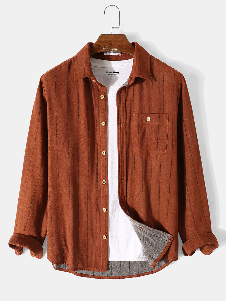 Brand:ChArmkpRDecoration:Pocket,ButtonFit Type:Regular FitMaterial:CottonNeckline:LapelPattern Type:StripedScene:Leisure,Outdoor,Wedding,HomeSeason:AutumnSize:2XL,L,S,XL,MSleeve:Long SleeveStyle:CasualThickness:Regular