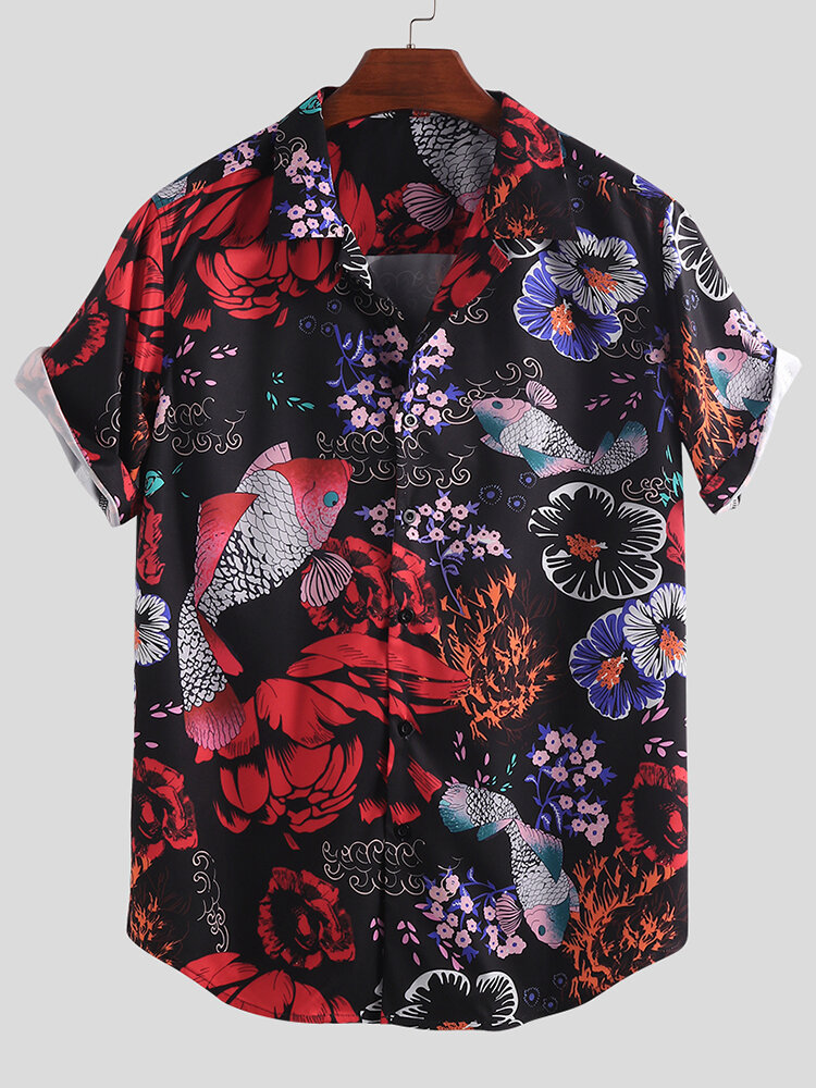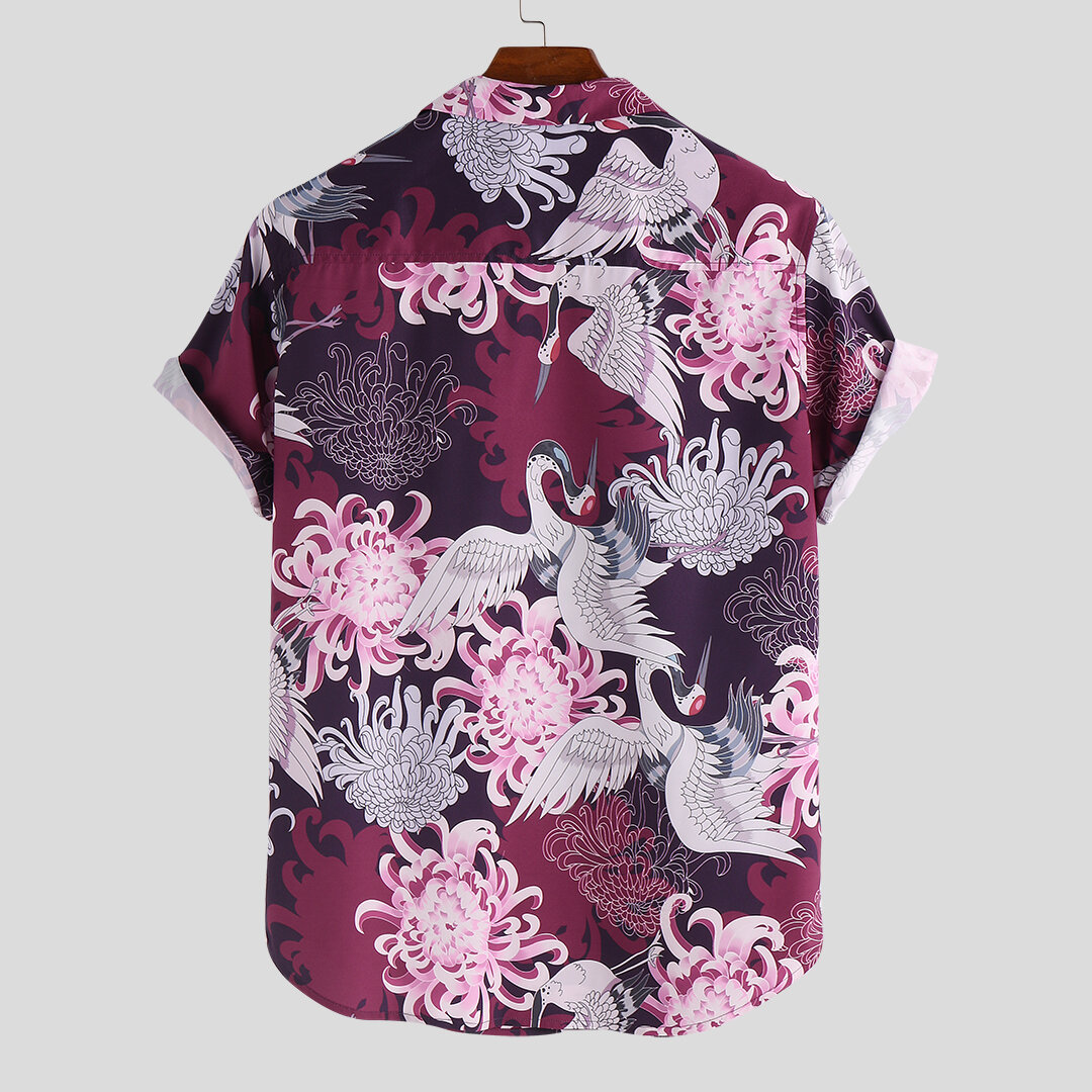 Men Animal Floral Print Short Sleeve Relaxed Revere Shirts – XL Pink