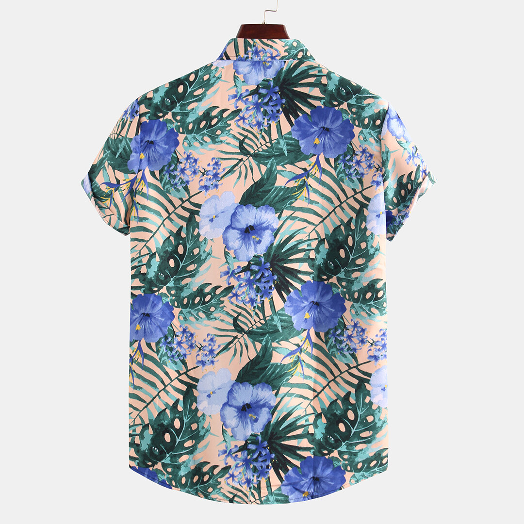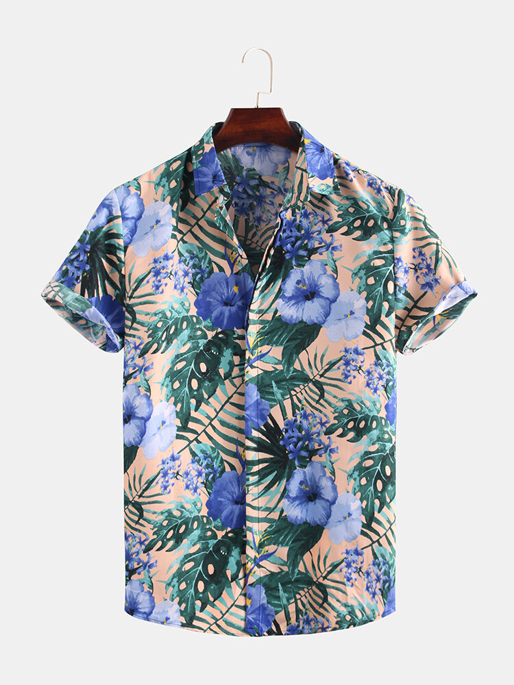 Men Blue Oriental Print Short Sleeve Relaxed Shirts – M Blue
