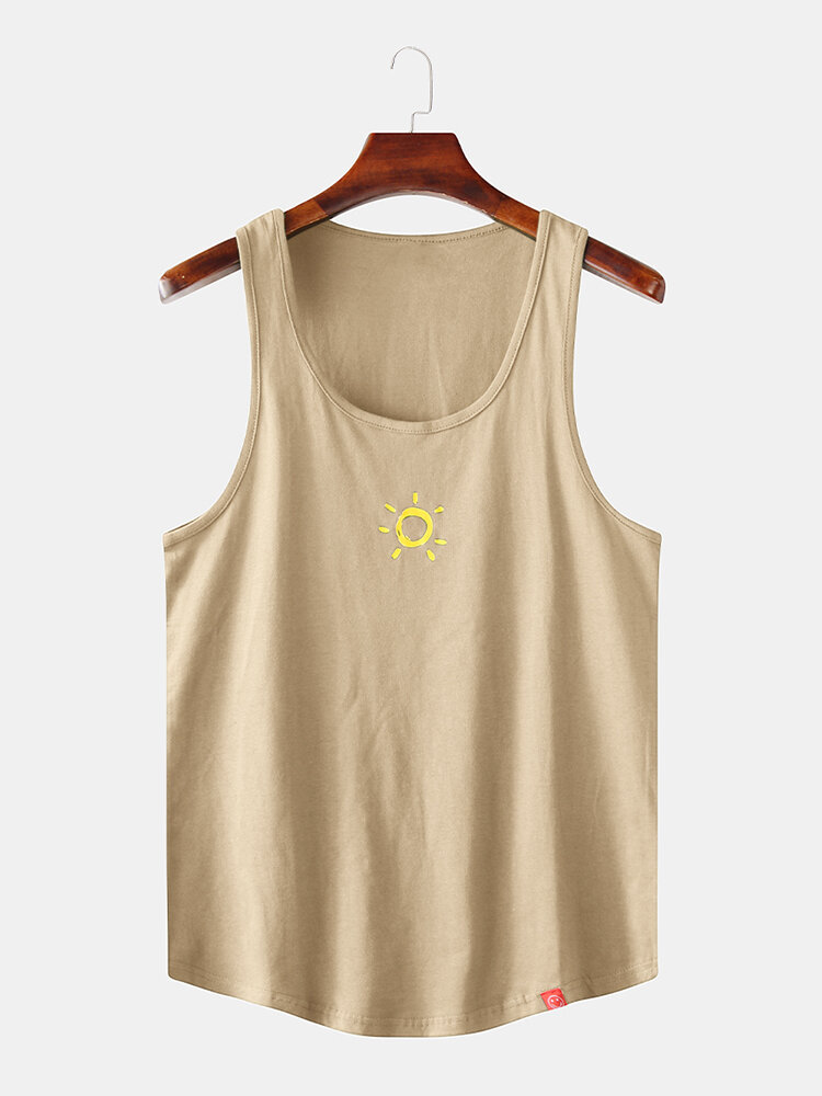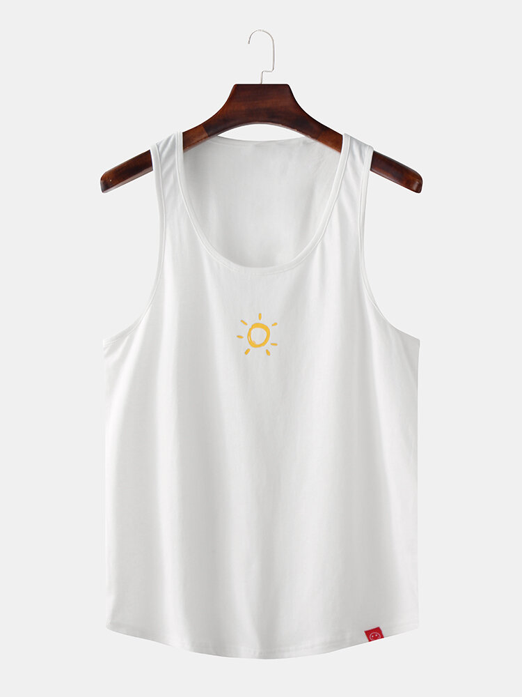 Men Casual Cotton Graffiti Sun Print Solid Color Crew Neck Sleeveless Tank Tops – Dark Grey L