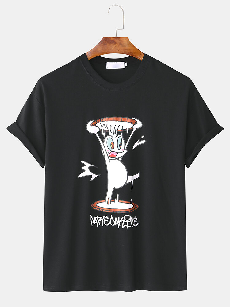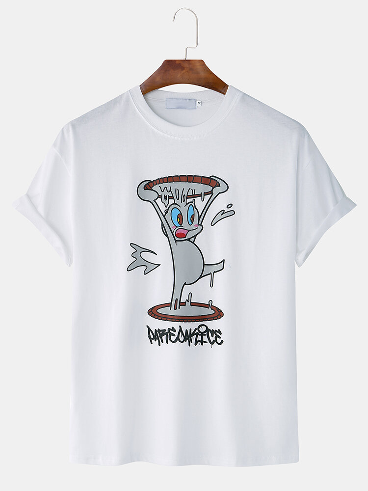 Men Casual Graffiti Cartoon Print Loose T-Shirts – 2XL White