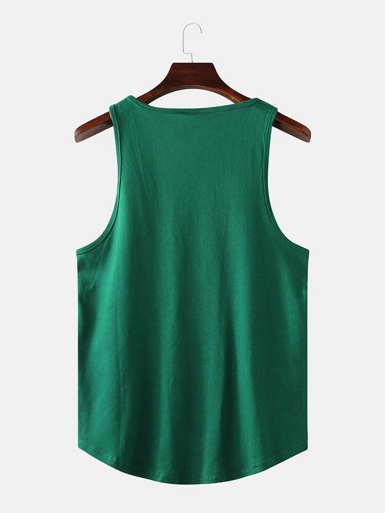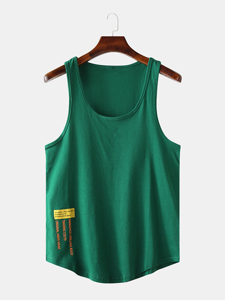 Men Casual Letter Print Solid Color Crew Neck Sleeveless Tank Tops – White S