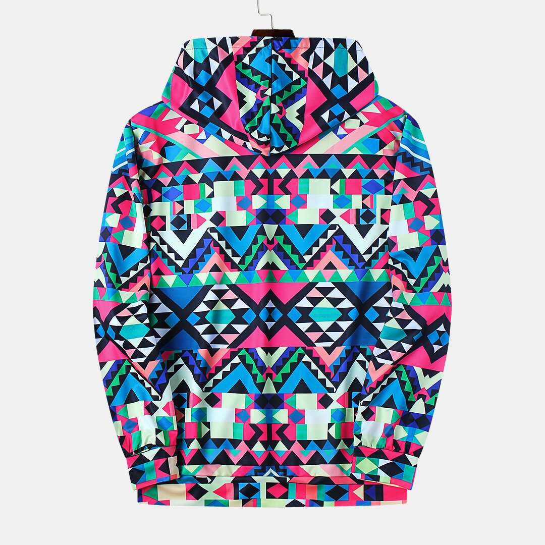 Men Casual Loose Color Printed Long Sleeve Hooded Sweatshirt – S #2