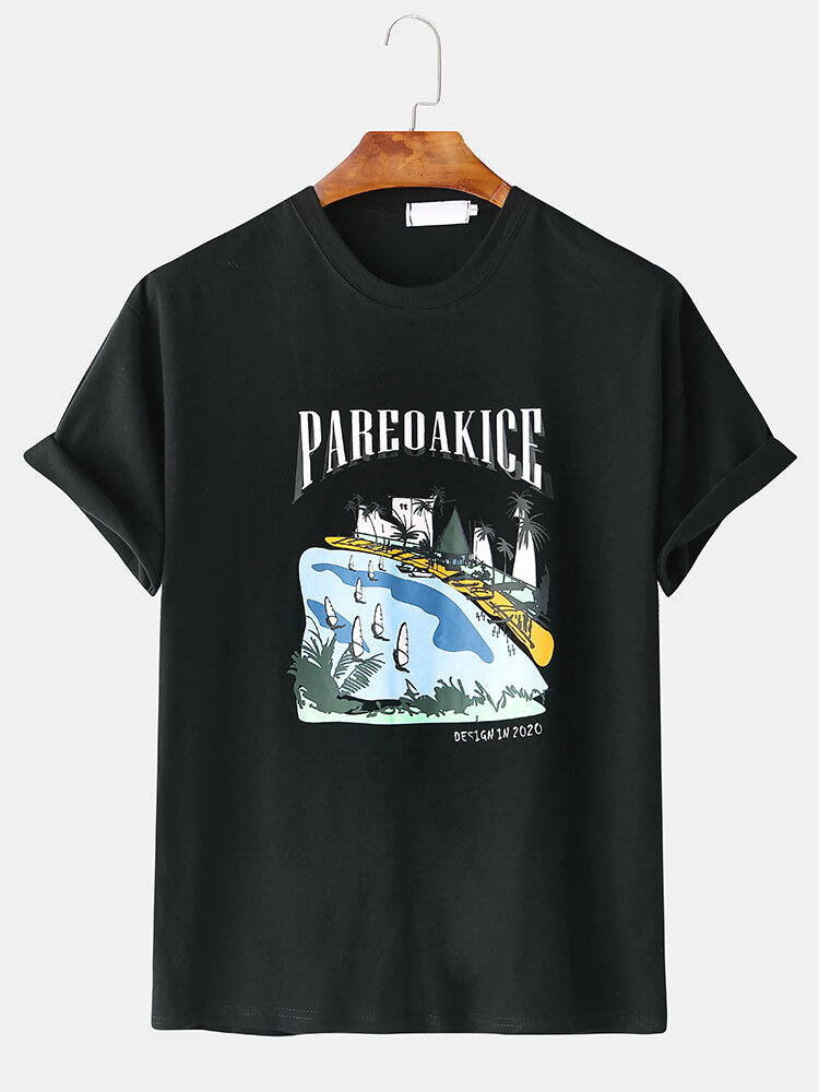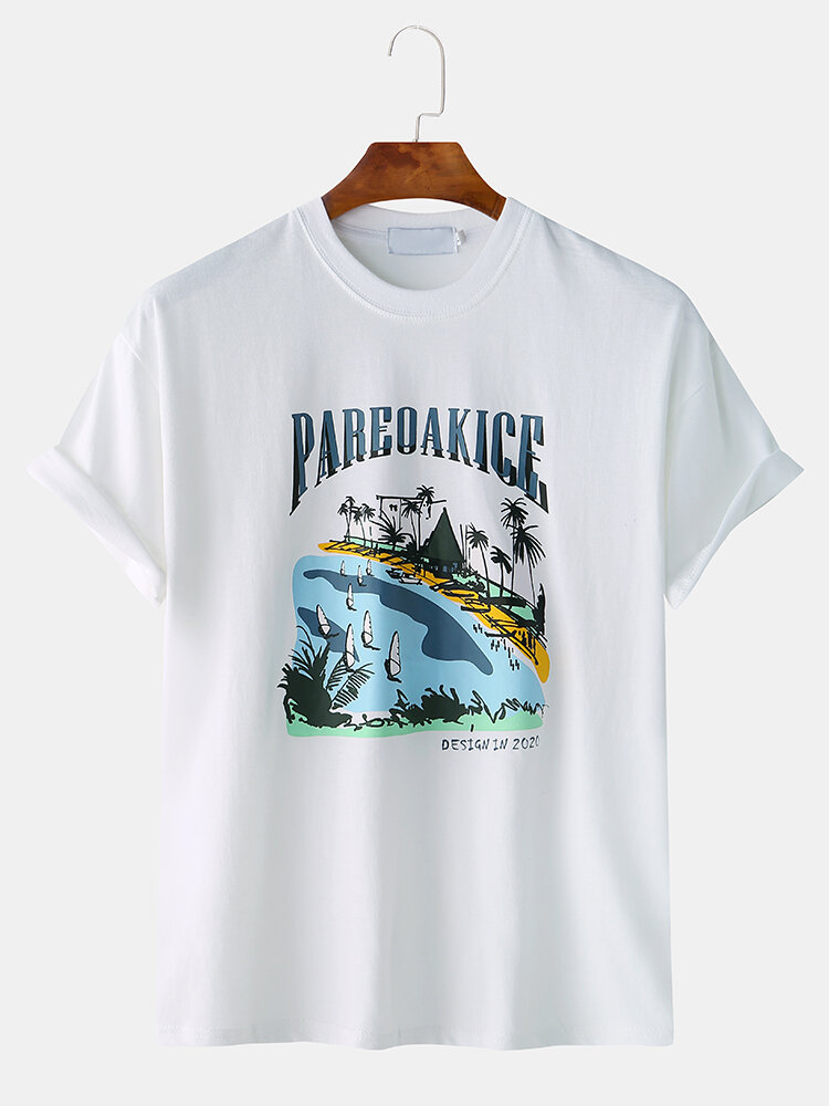 Men Casual Retro Printing Short Sleeve T-Shirts – M White