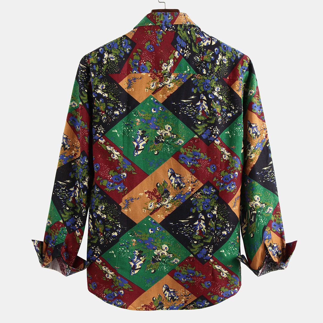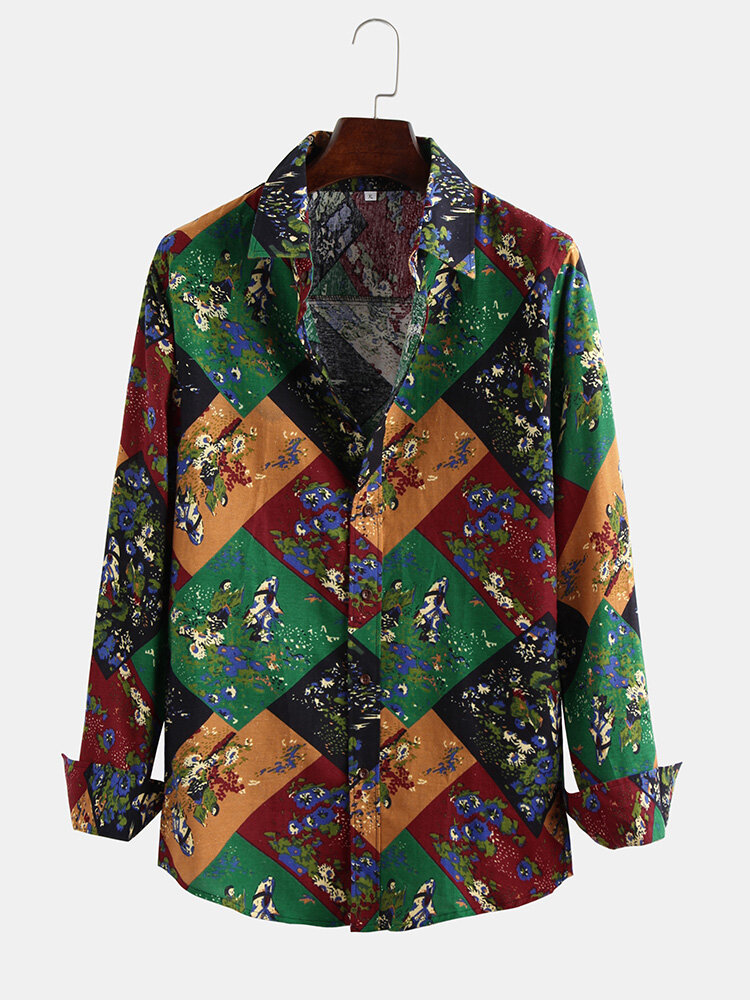 Men Color Block Character Print Long Sleeve Shirts – S Green