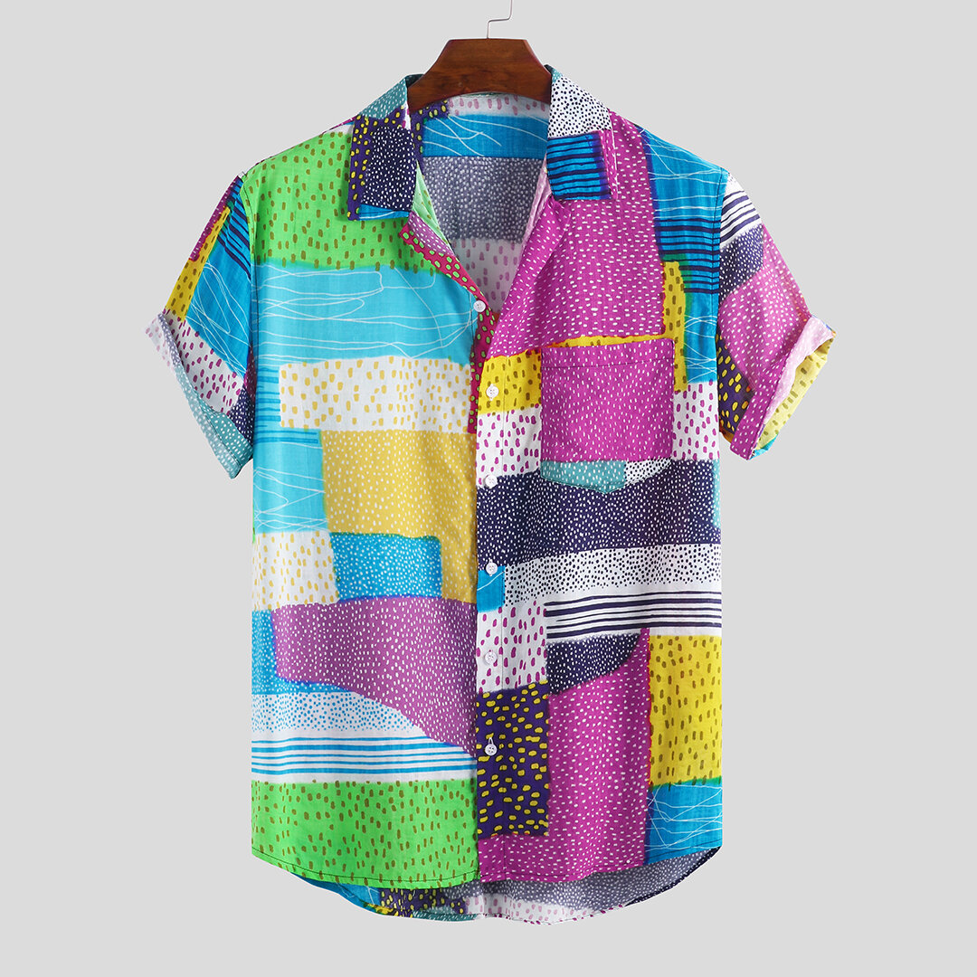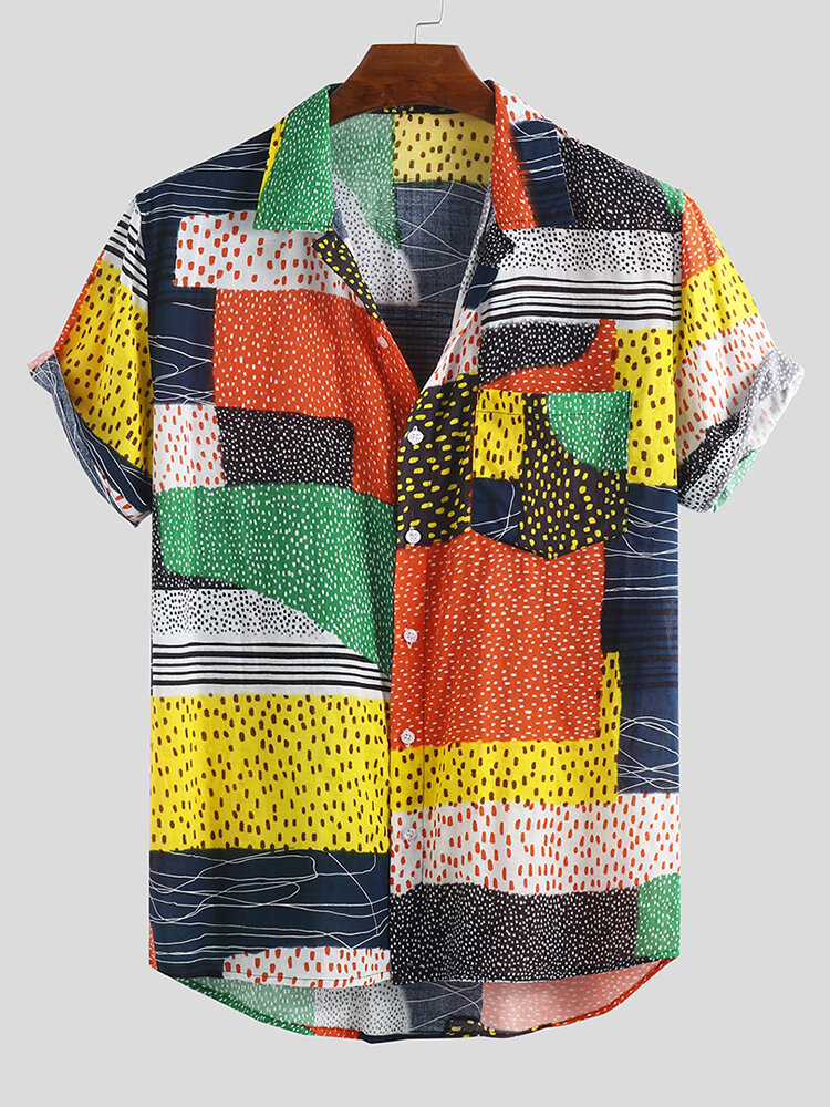 Men Color Block Dot Short Sleeve Hawaiian Shirts – 2XL Rose