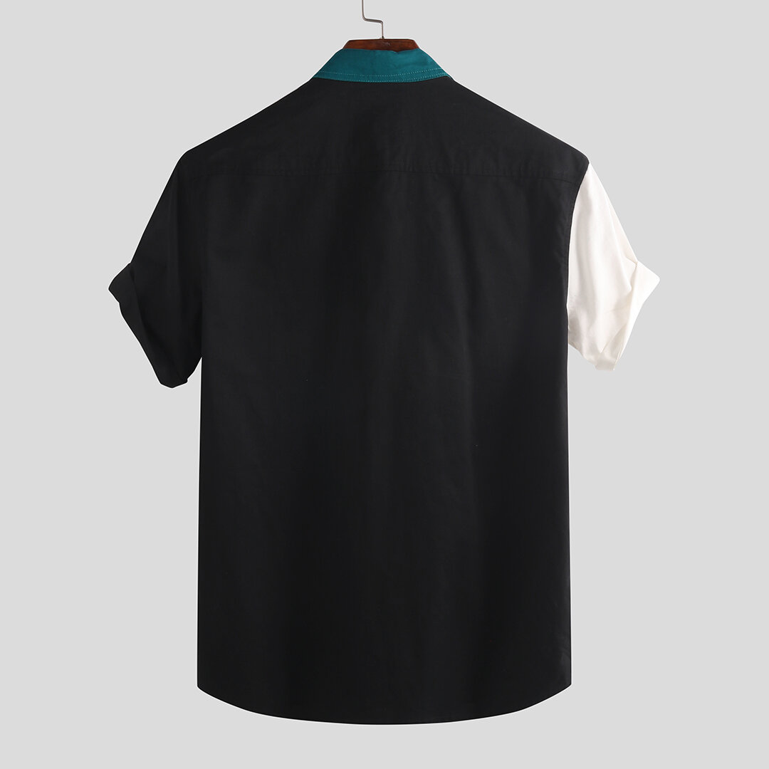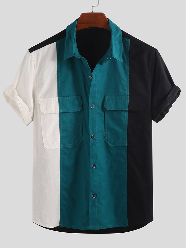 Brand Name: CharmkprSleeve Length: Short SleeveItem Type: ShirtsPattern Type: Color BlockGender: MenFit Type: LooseStyle: Casual, Home, VintageThickness: ThinCollar: Turn-down CollarSeason: Spring, SummerMaterial: CottonOccasion: Leisure, Work, Homedress