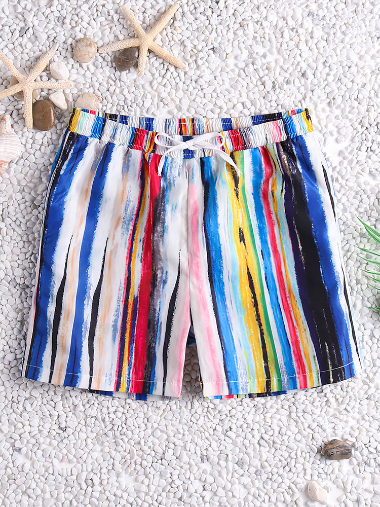 Men Colorful Stripe Quick Drying Beach Hawaiian Board Shorts – 3XL Lake Blue