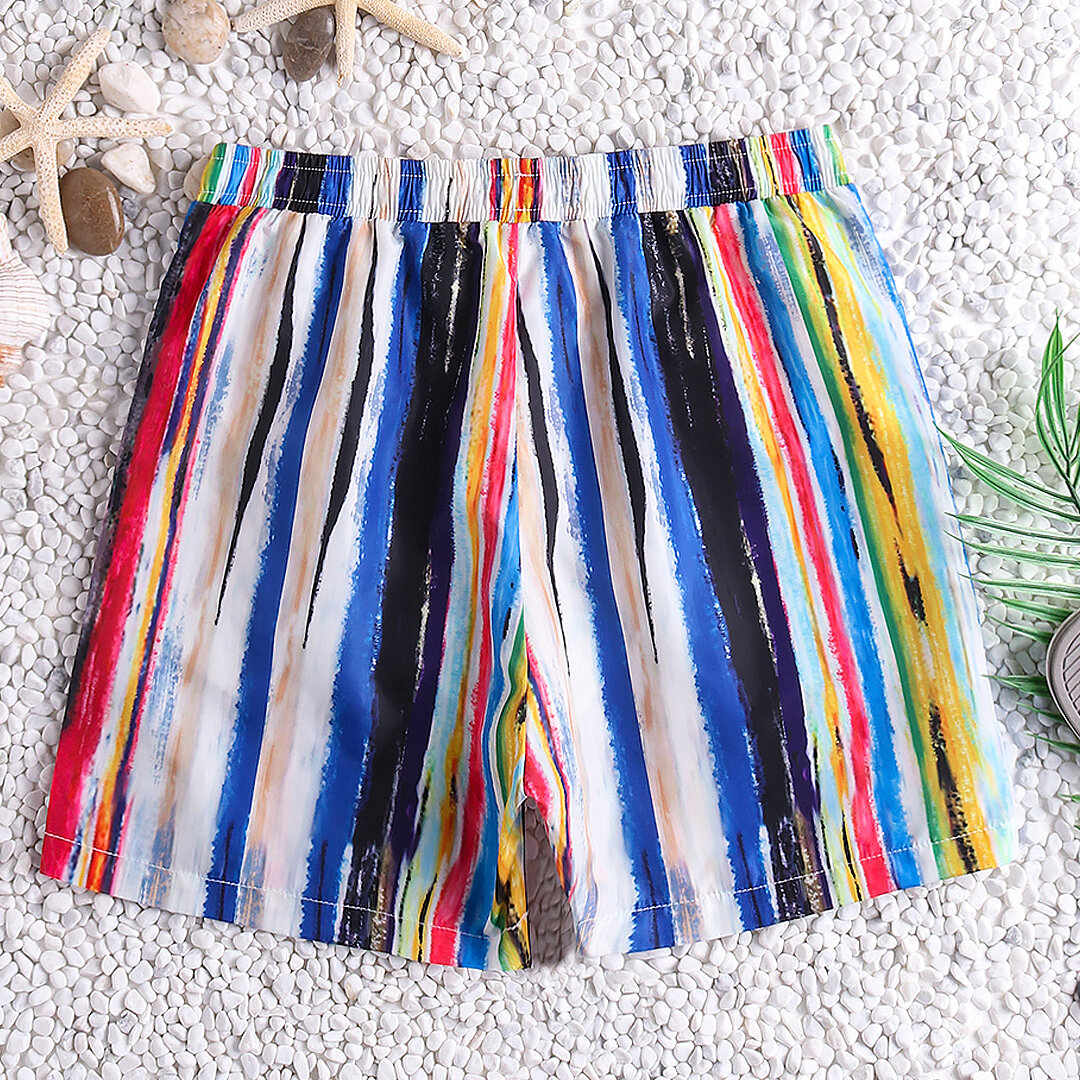 Men Colorful Stripe Quick Drying Beach Hawaiian Board Shorts – 3XL Lake Blue