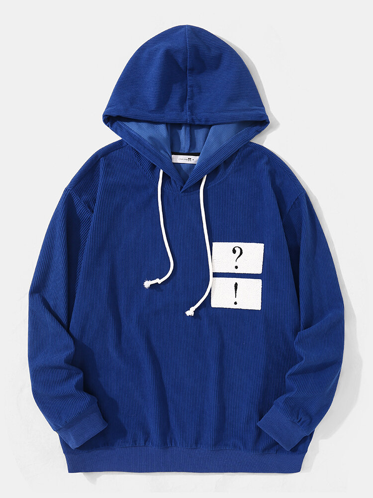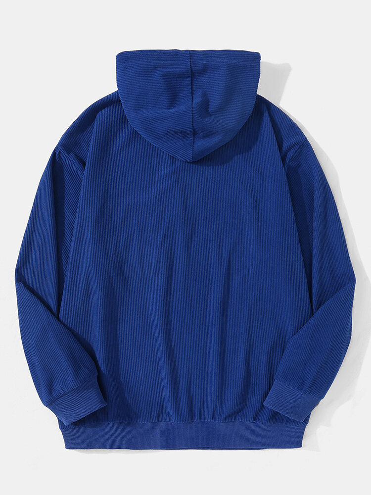 Men Corduroy Klein Blue Print Bodycon Hem Casual Hooded Sweatshirt – Blue S