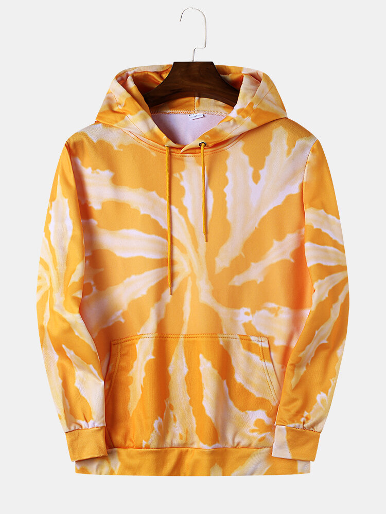 Men Cotton Casual Printed Loose Long Sleeve Hooded – XL Orange