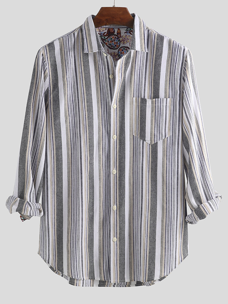 Men Cotton Colorful Vertical Stripe Long Sleeve Shirts – M Red