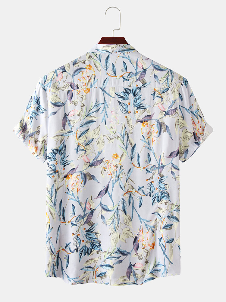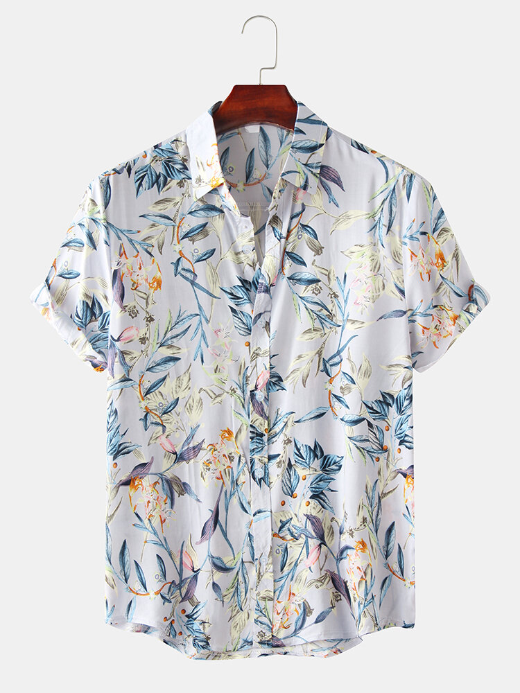 Closure Type:Single BreastedCollar:Crew NeckColor:BlueCrafts:PrintingCuff Type:Straight SleevesDecoration:ButtonFit Type:FitLength:RegularMaterial:CottonOccasion:Beach,Casual,LeisurePattern:FloralSeason:SummerSize:L,M,S,XLSleeve Length:Short SleeveStyle:Casual,Fashion,Hawaii Style,LeisureThickness:Regular