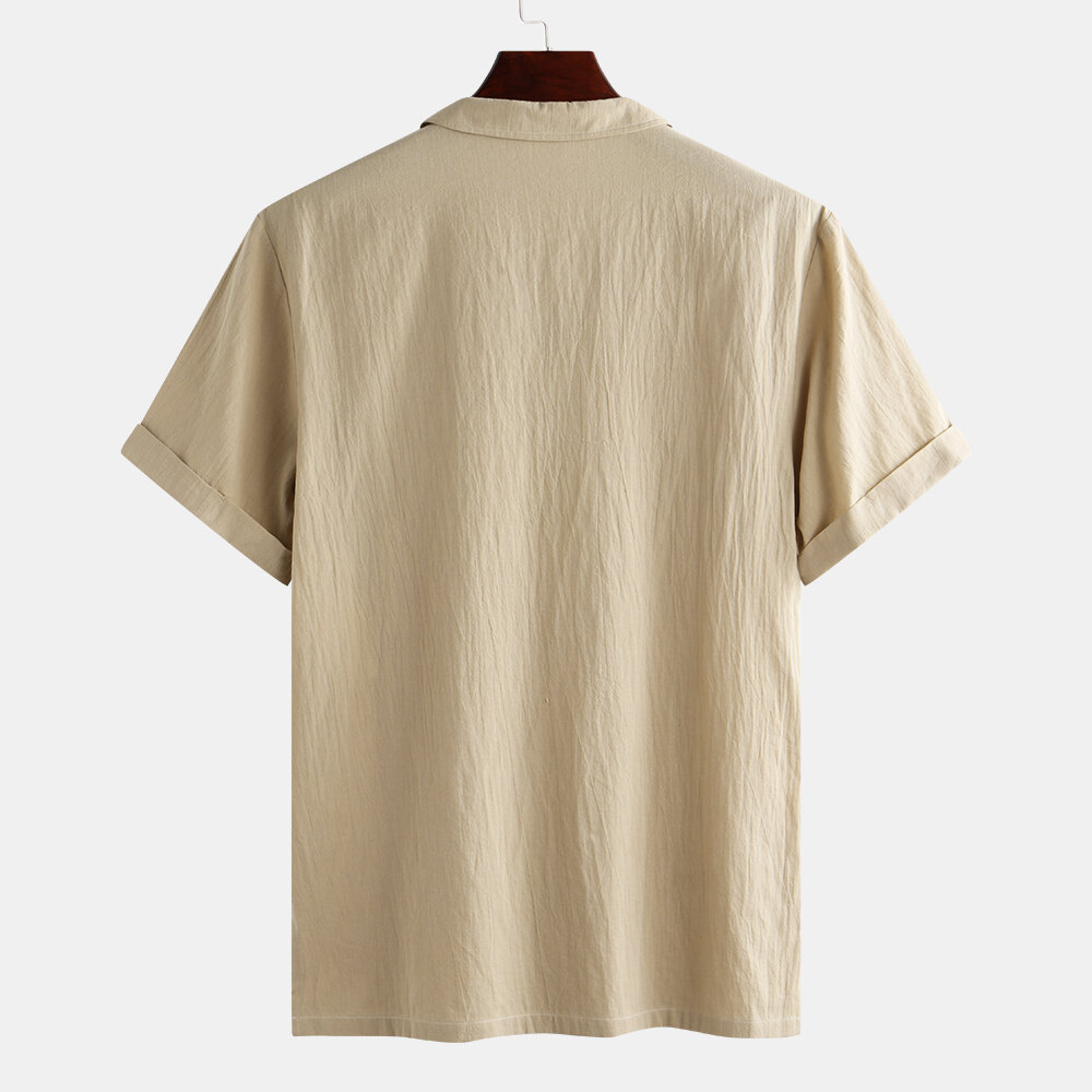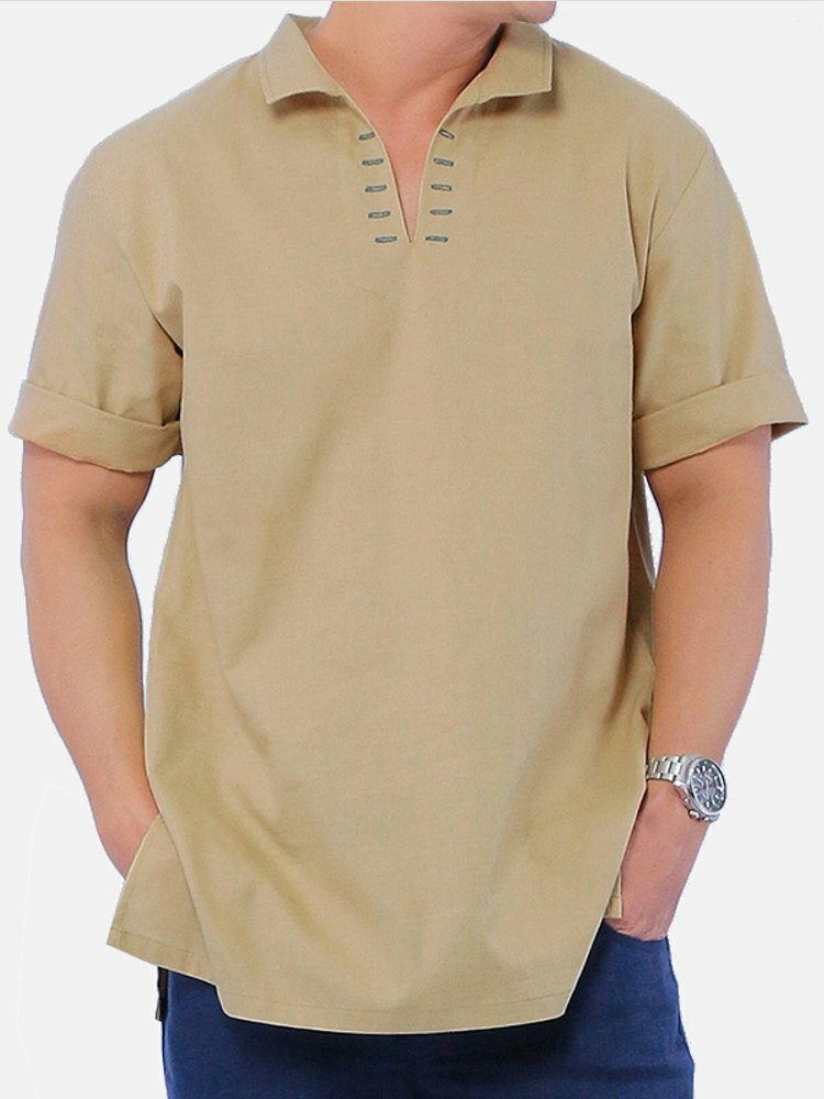Men Cotton Solid Color Embroidery Collar Casual T-Shirts – XL Yellow