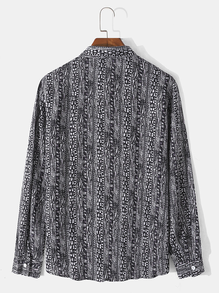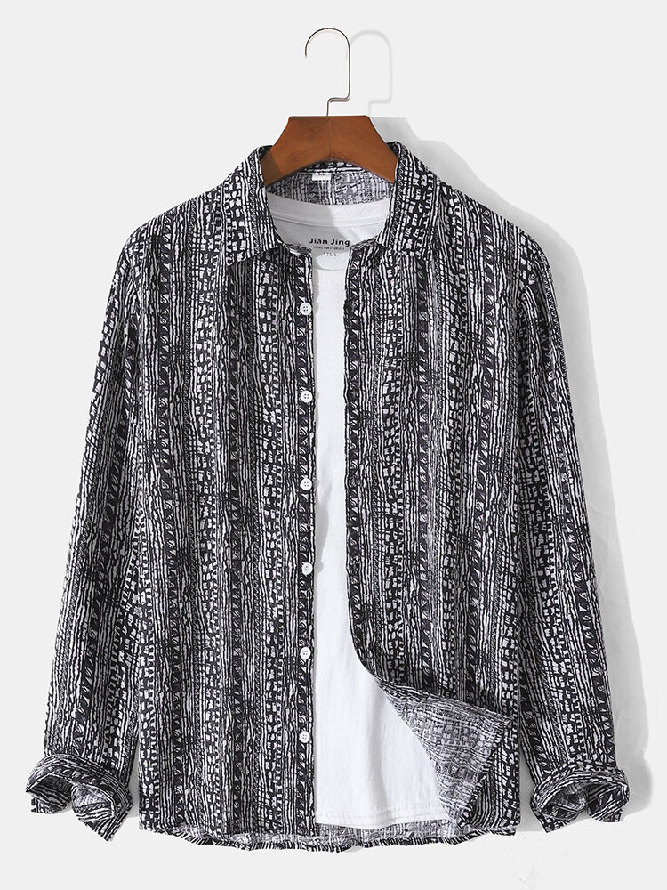 Men Cotton Striped Button Long Sleeve Lapel Shirts – Dark Grey S