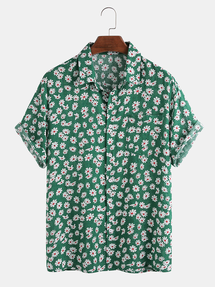 Brand:ChArmkpRDecoration:PocketFit Type:Regular FitMaterial:CottonNeckline:LapelPattern Type:Ditsy FloralScene:Leisure,Home,Beach,CasualSeason:Spring,SummerSize:XXXL,XXL,L,XL,MSleeve:Short SleeveStyle:CasualThickness:Regular