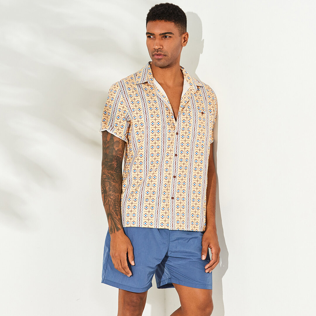 Brand Name: CharmkprSleeve Length: Short SleeveItem Type: ShirtsPattern Type: PrintingGender: MenFit Type: LooseStyle: Casual, Home, VintageThickness: ThinCollar: Turn-down CollarSeason: Spring, SummerMaterial: PolyesterOccasion: Leisure, Work, Homedress