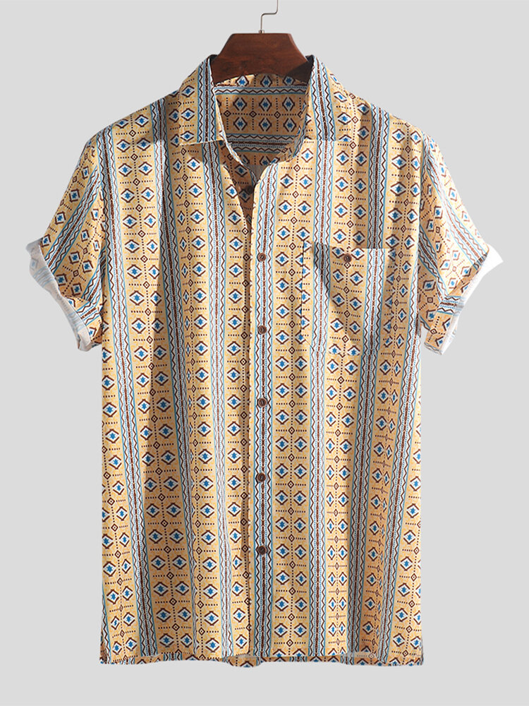 Men Ethnic Pattern Print Vintage Chest Pocket Holiday Relaxed Shirts – 2XL Purple