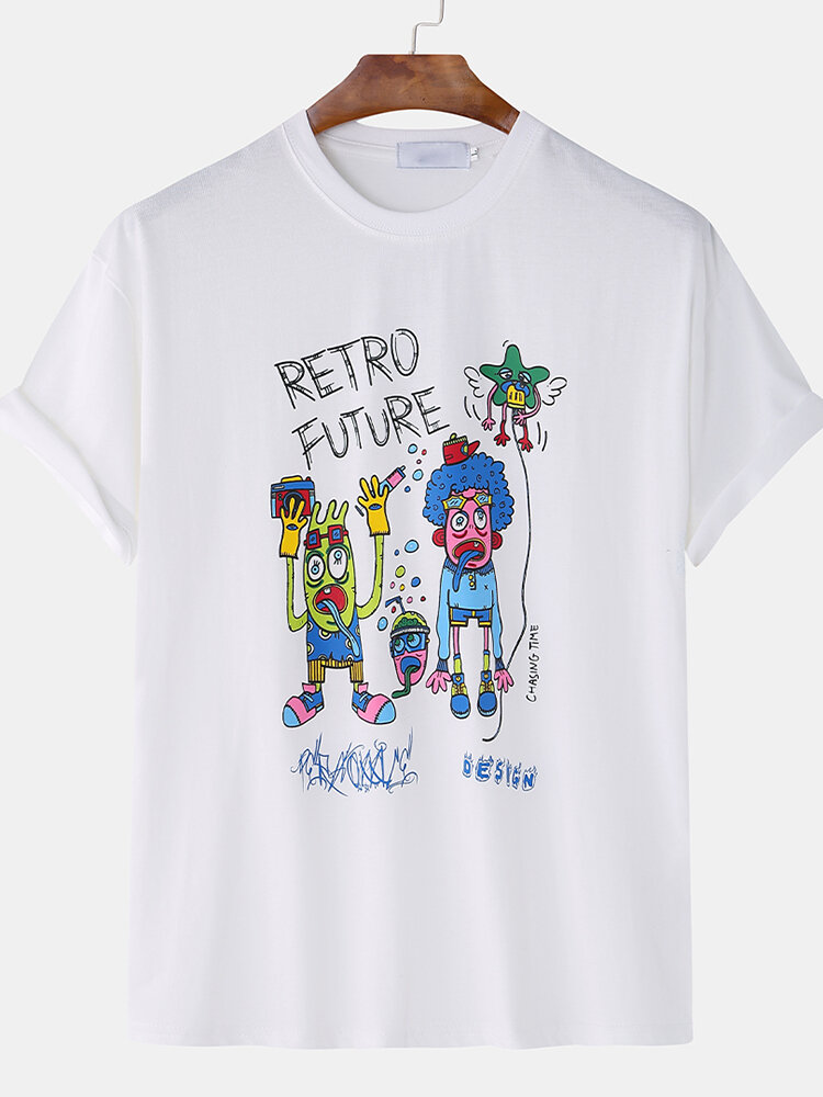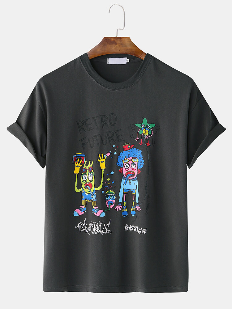 Men Fashion Casual Cartoon Printing Crew Neck Shirts – S Blue