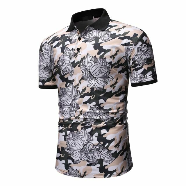 Men Fashion Printed Short-sleeved Lapel Shirts – S As Picture