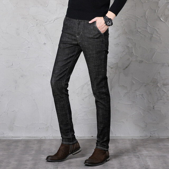 Men Feet Slim Jeans Youth Casual Pants Elastic Trousers – 28 Black