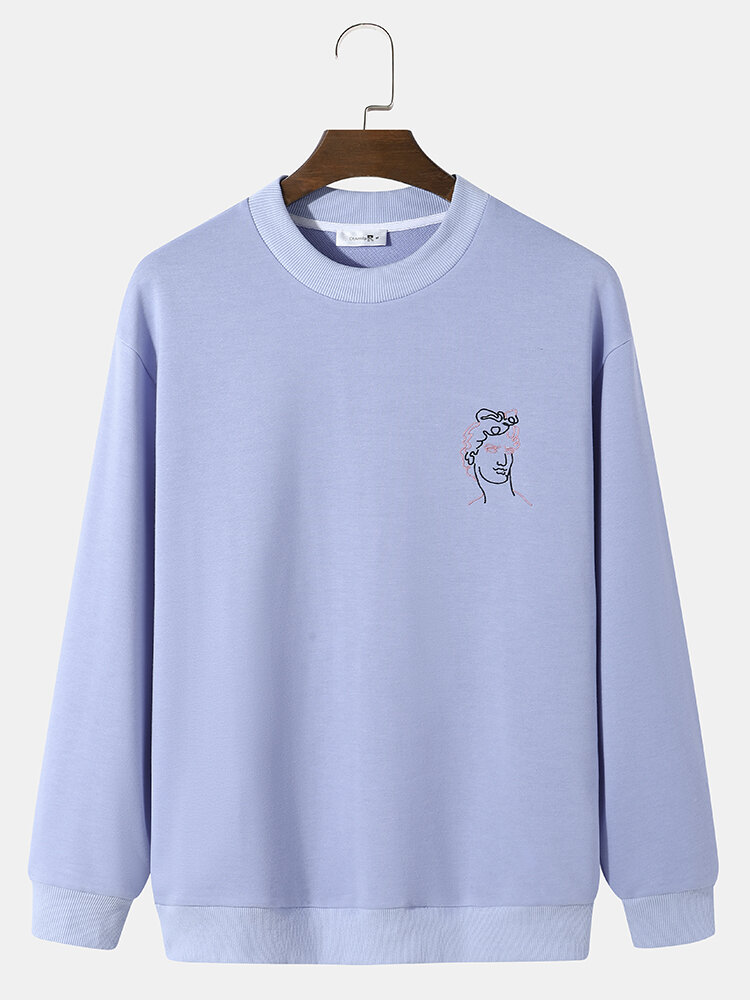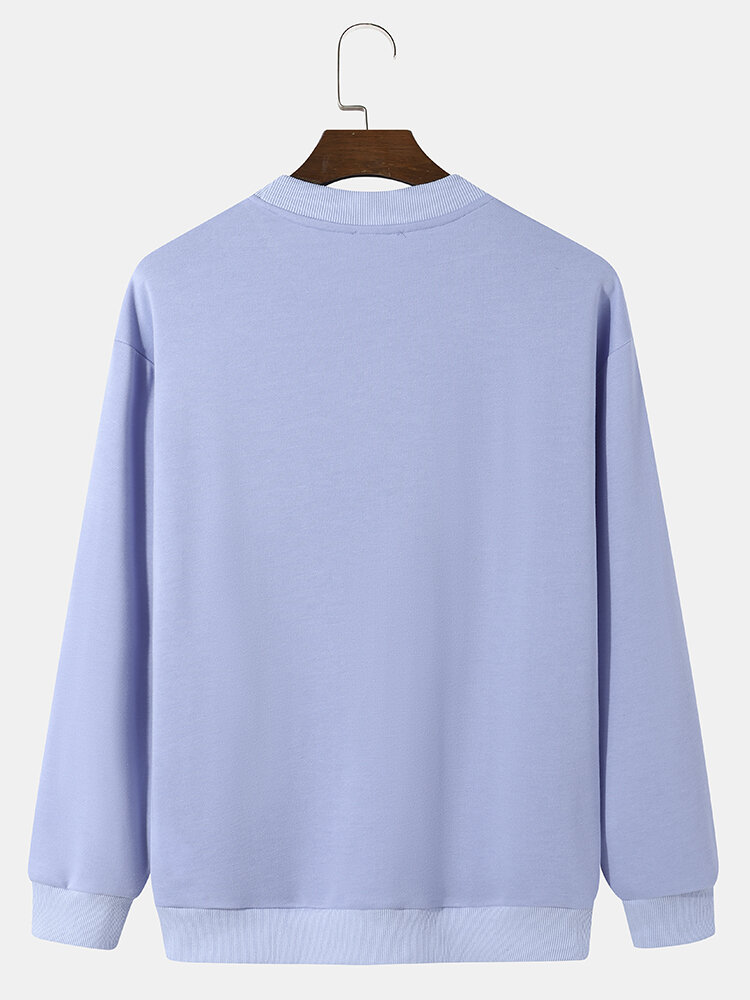 Men Figure Printing Crew Neck Long Sleeve Outdoor Pullover Sweatshirt – Purple S