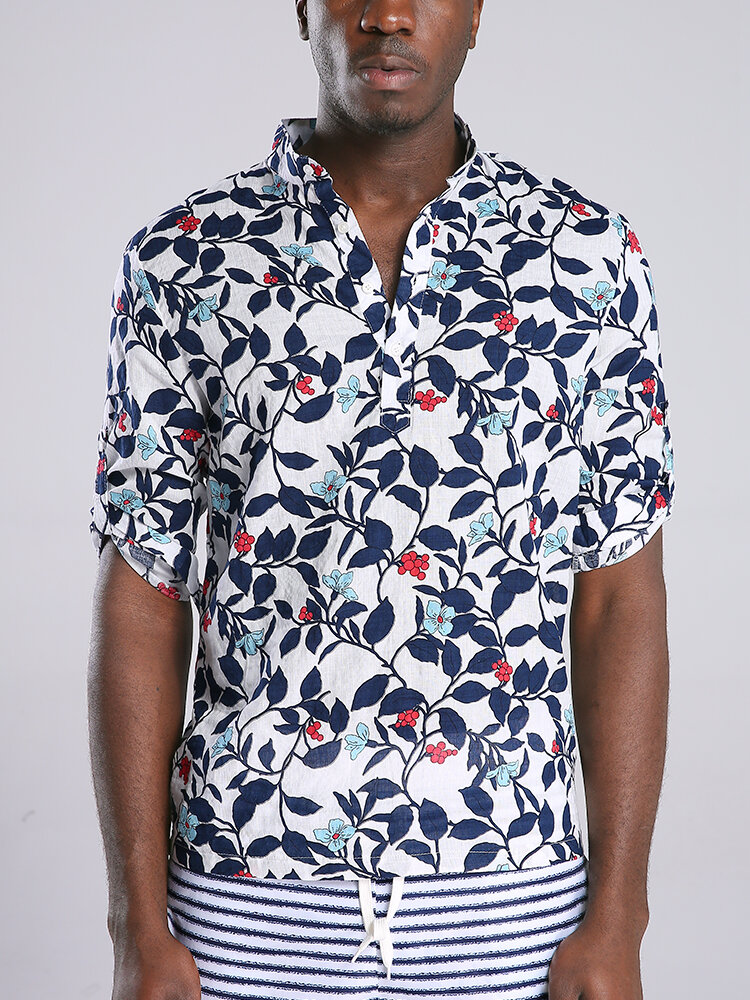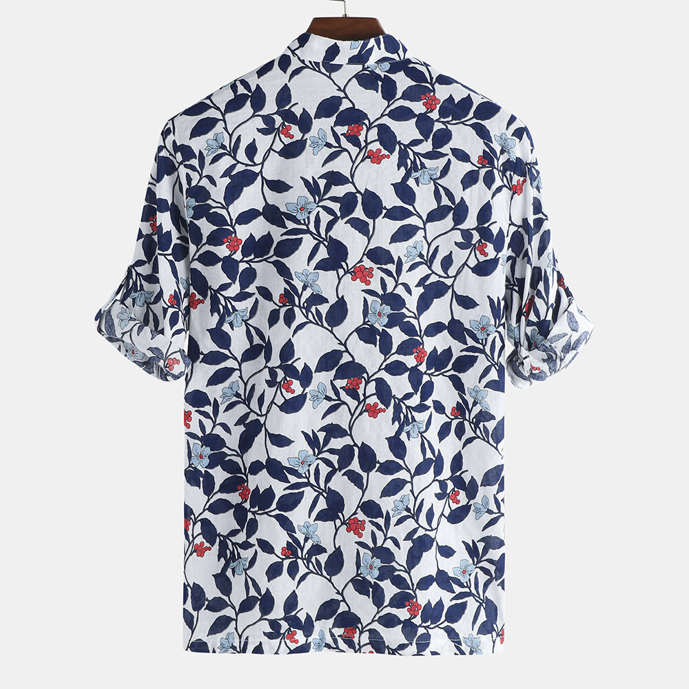 Item Type: ShirtsPattern Type: FloralGender: MenFit Type: LooseStyle: Hawaiian Style, LeisureThickness: ThinCollar: Stand CollarSeason: Spring, SummerMaterial: PolyesterColor: BlueSleeve Length: Half SleeveOccasion: Traveling, Beach