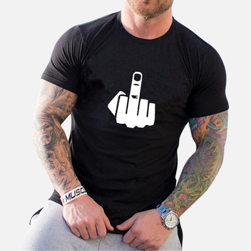 Men Funny Middle Finger Pattern Printed Short Sleeve T-Shirt – XL Black