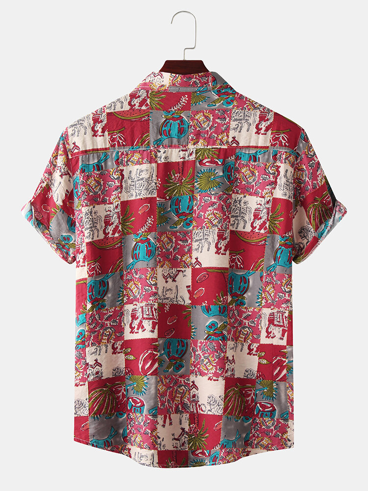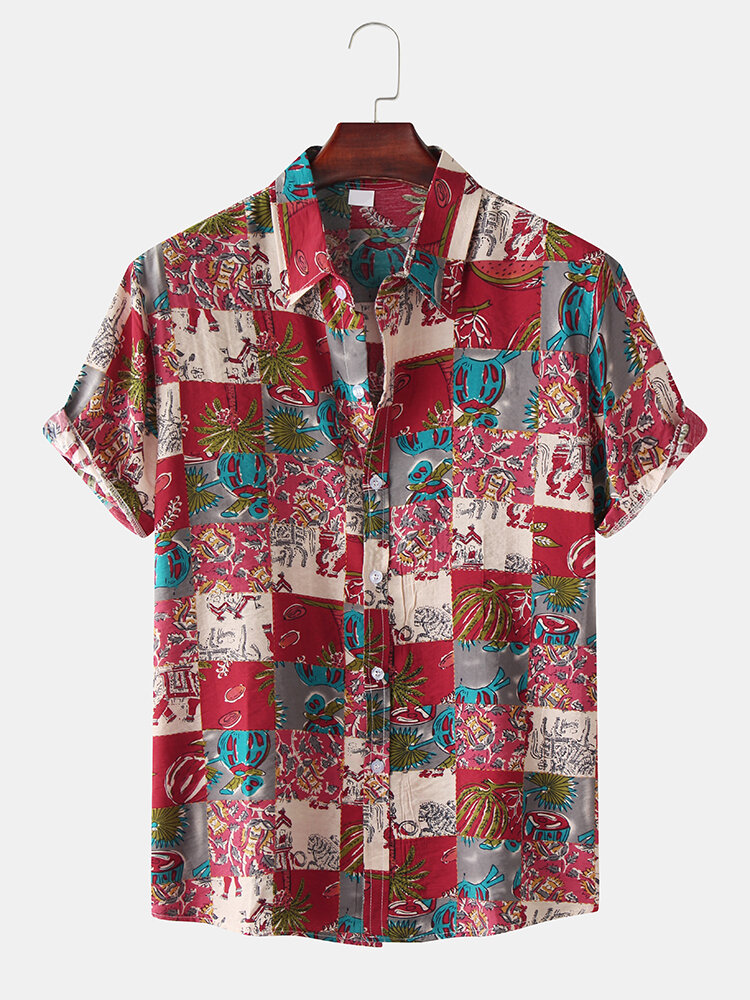 Closure Type:Single BreastedCollar:Turn-down CollarColor:Brown,RedCrafts:PrintingCuff Type:Straight SleevesDecoration:ButtonFit Type:FitLength:RegularMaterial:CottonOccasion:Beach,Casual,LeisurePattern:Color Block,PlaidSeason:SummerSize:L,M,S,XLSleeve Length:Short SleeveStyle:Casual,Europenan And American Style,Fashion,Hawaii Style,LeisureThickness:Regular