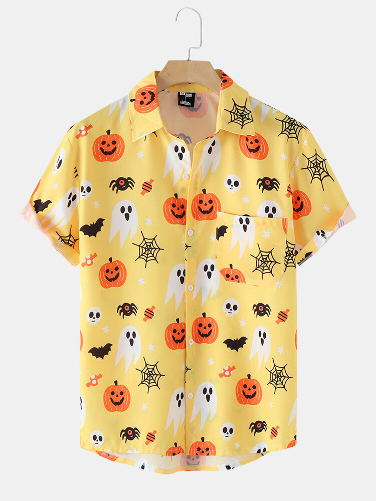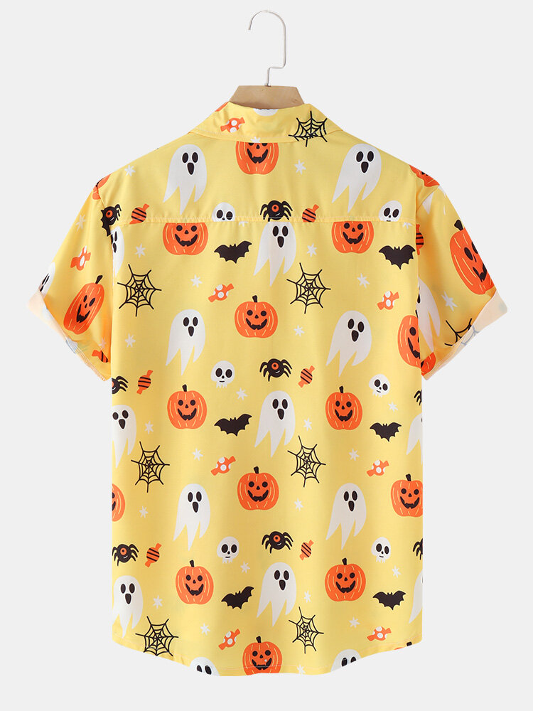 Men Ghost Pumpkin Pattern Funny Shirt – Yellow M