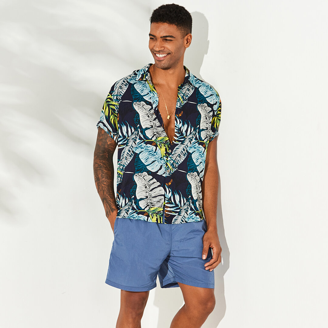 Item Type: ShirtsPattern Type: PrintingGender: MenFit Type: LooseStyle: Casual, Hawaiian StyleThickness: RegularCollar: Turn-down CollarSeason: Spring, SummerMaterial: RayonColor: BlueSleeve Length: Short SleeveOccasion: Leisure, Beach, Homedress