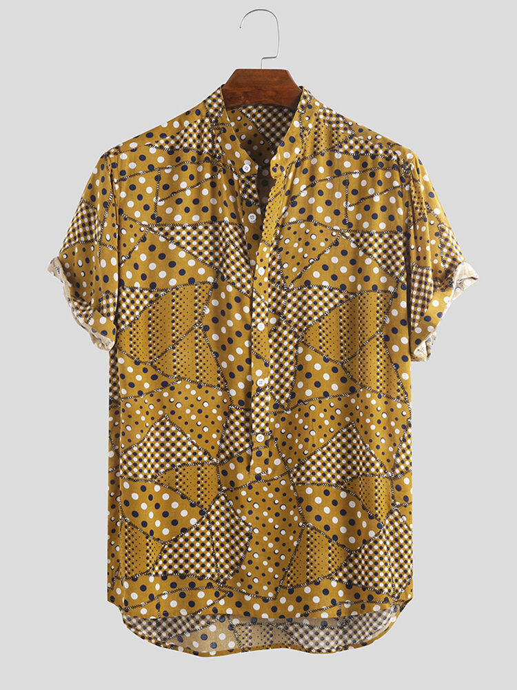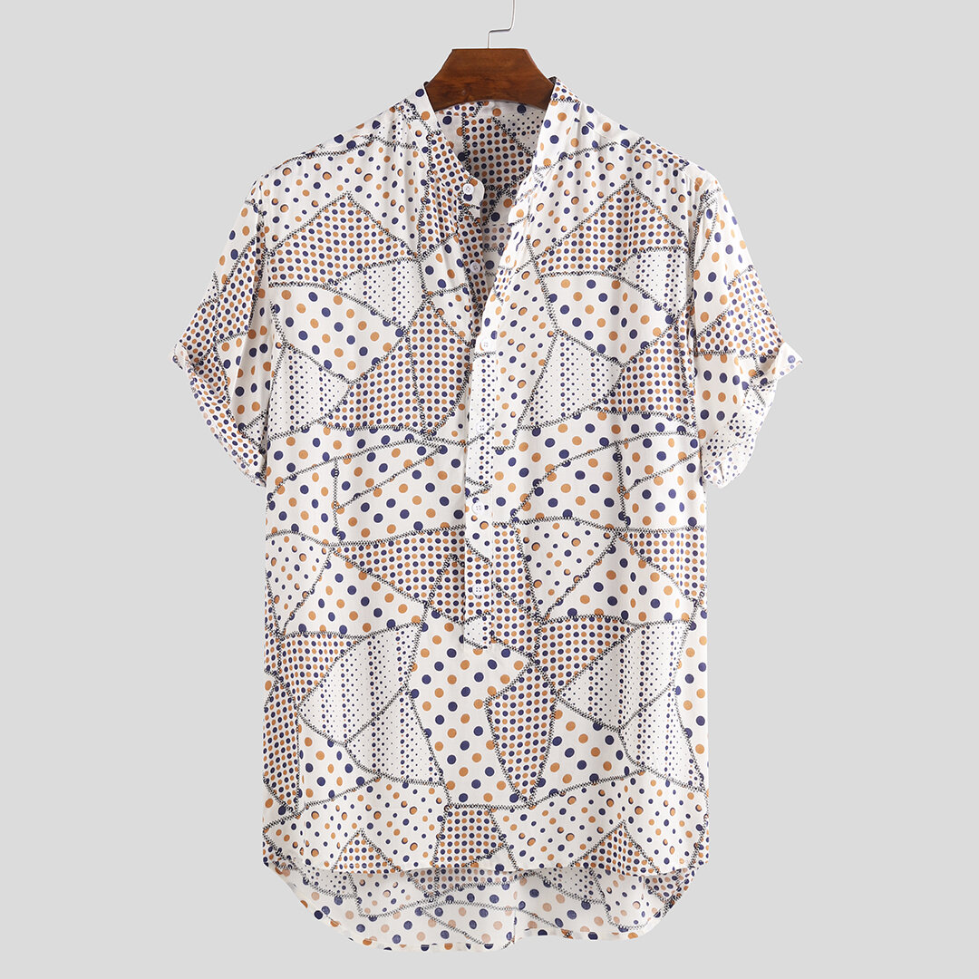 Men Irregular Pattern Polka Short Sleeve Henry Shirts – M Navy
