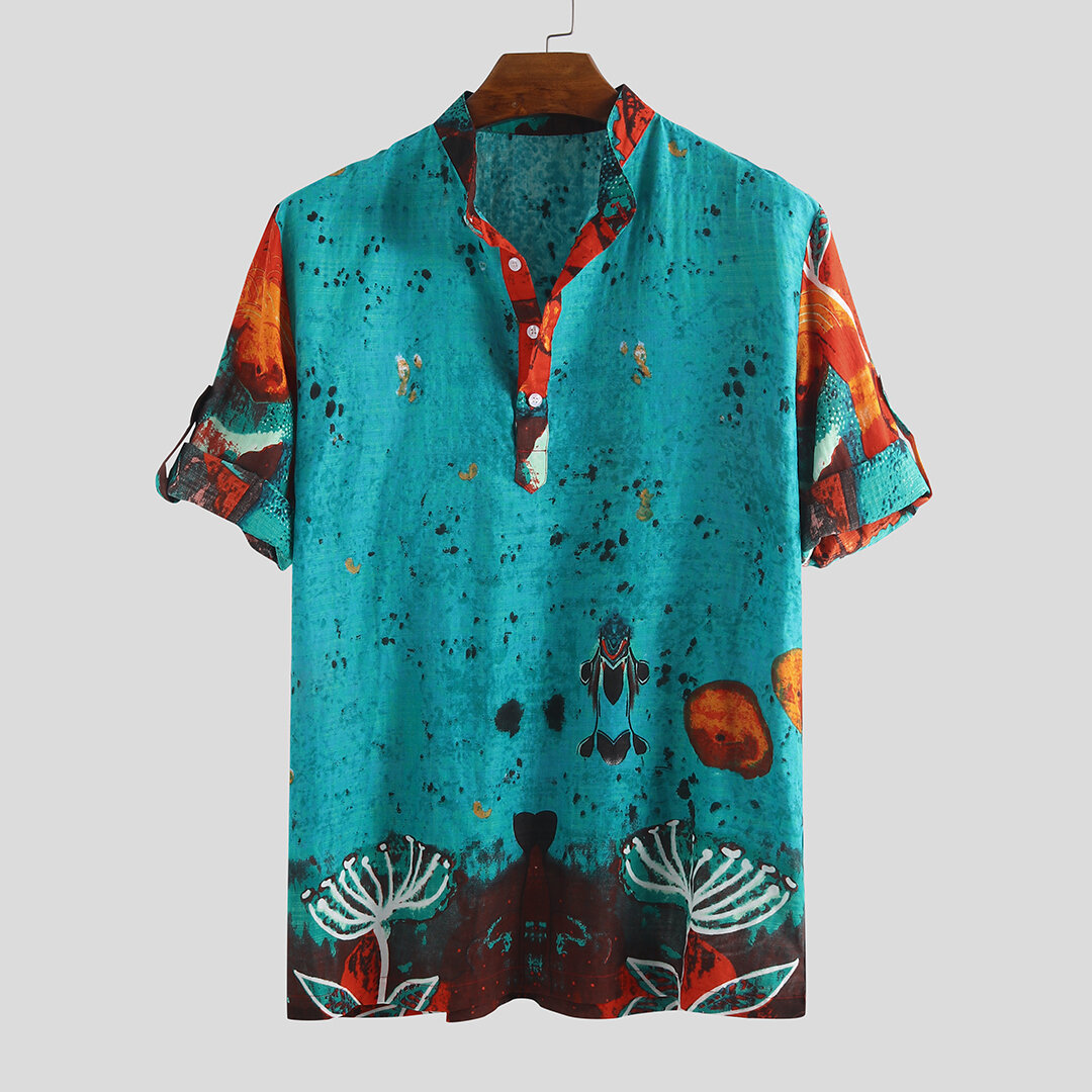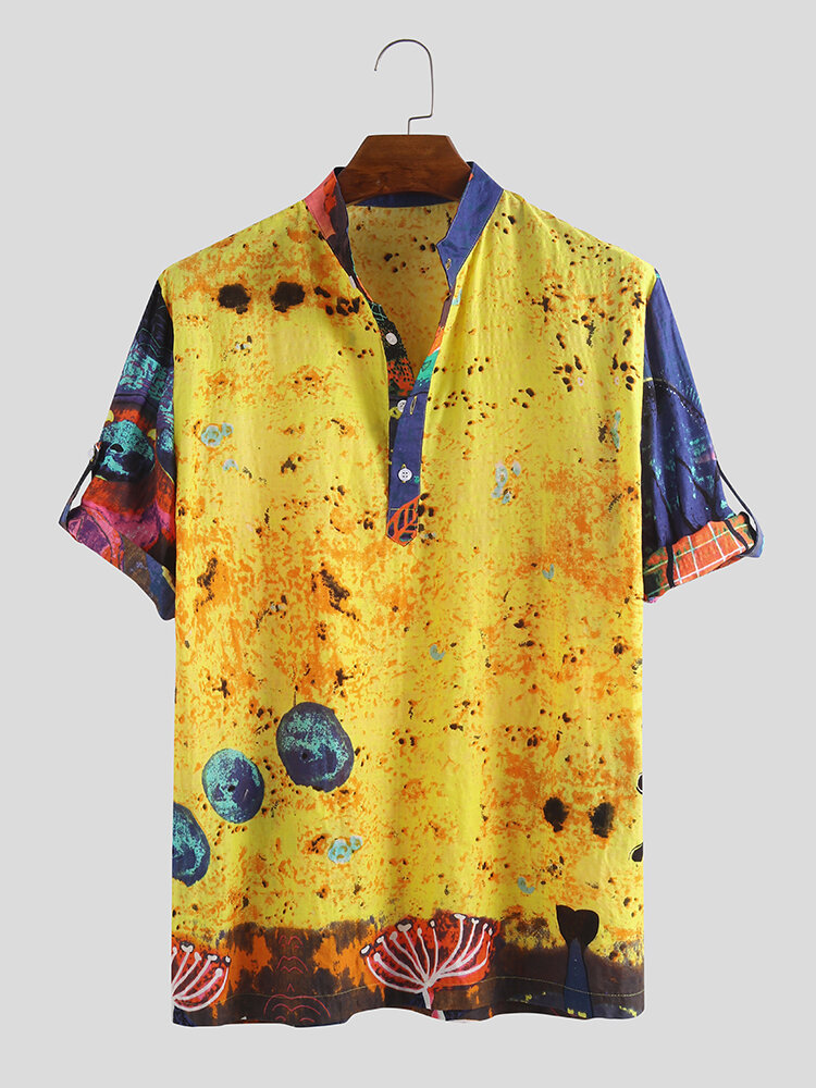 Men Jellyfish Print Half Sleeve Henley Shirts – M Red