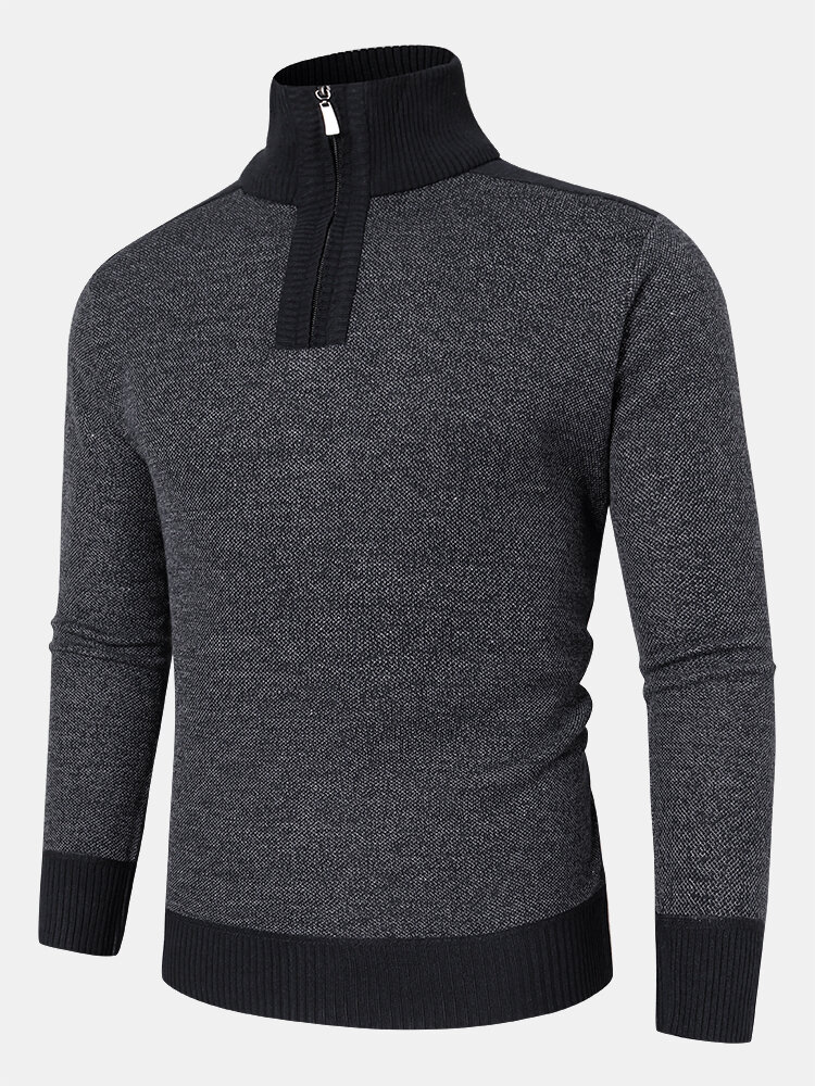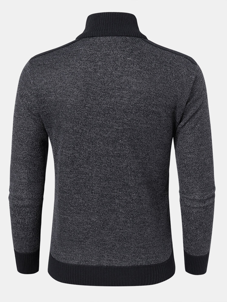 Men Knit Pure Solid Pullover Zip Stand Collar Velvets Warm Sweater – Red XS