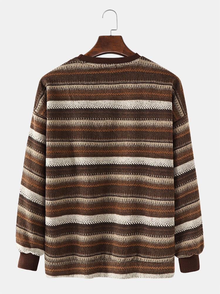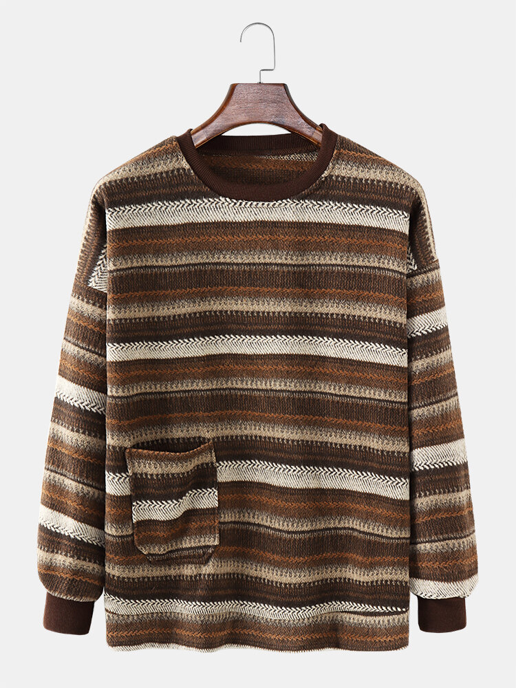 Men Knit Striped color Block Pocket Drop Shoulder Pullover Pullover Sweatshirt – Coffee S